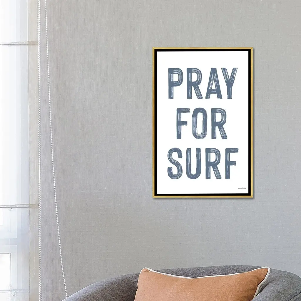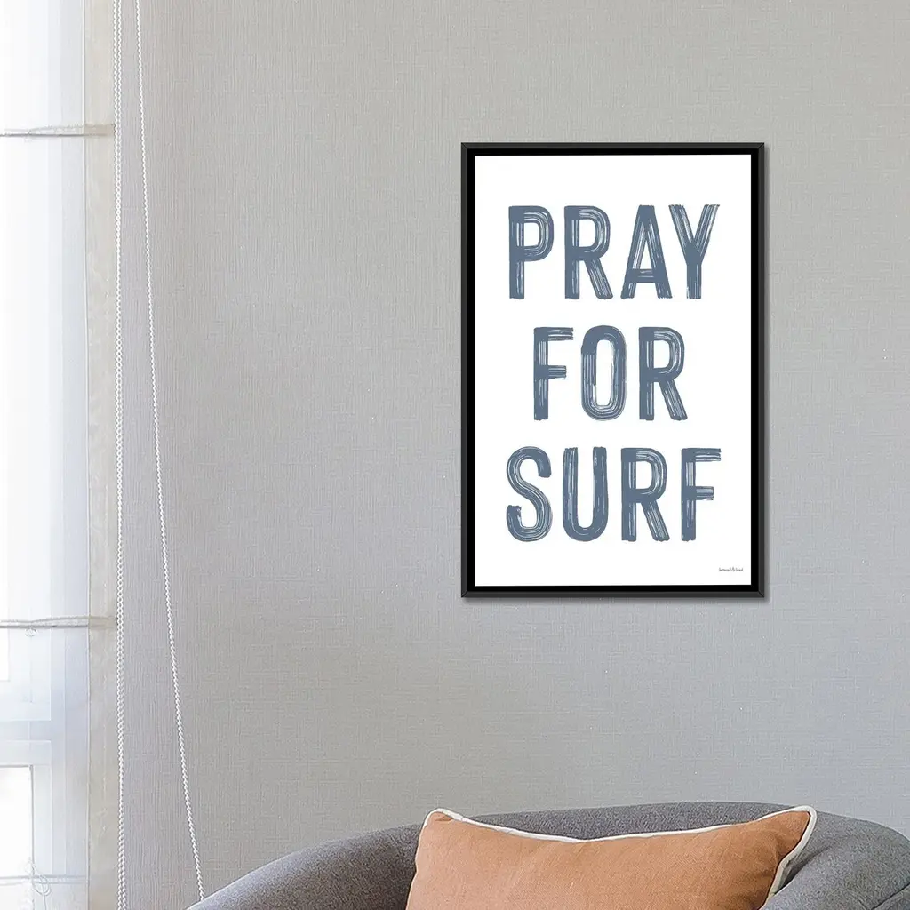 Icanvas "Pray For Surf" By Lettered & Lined Framed Canvas Print - Black - 26x18