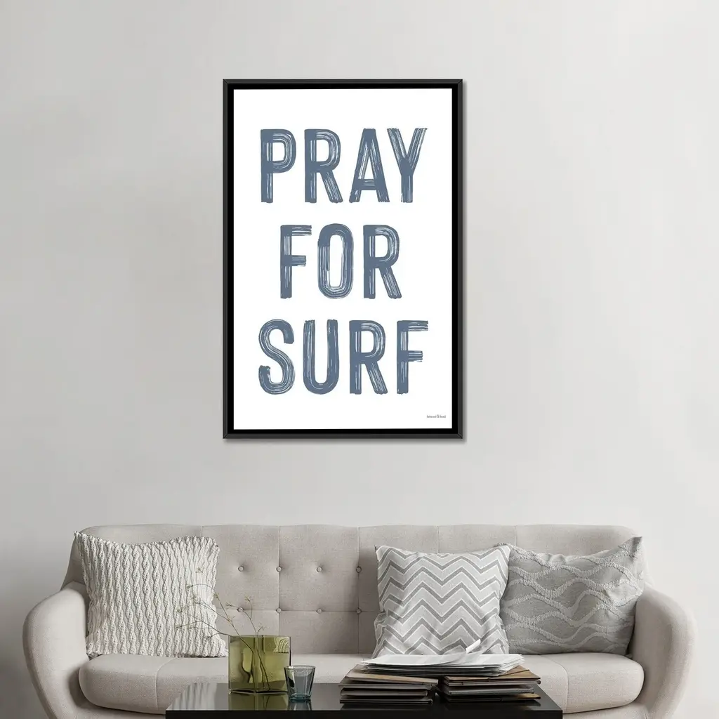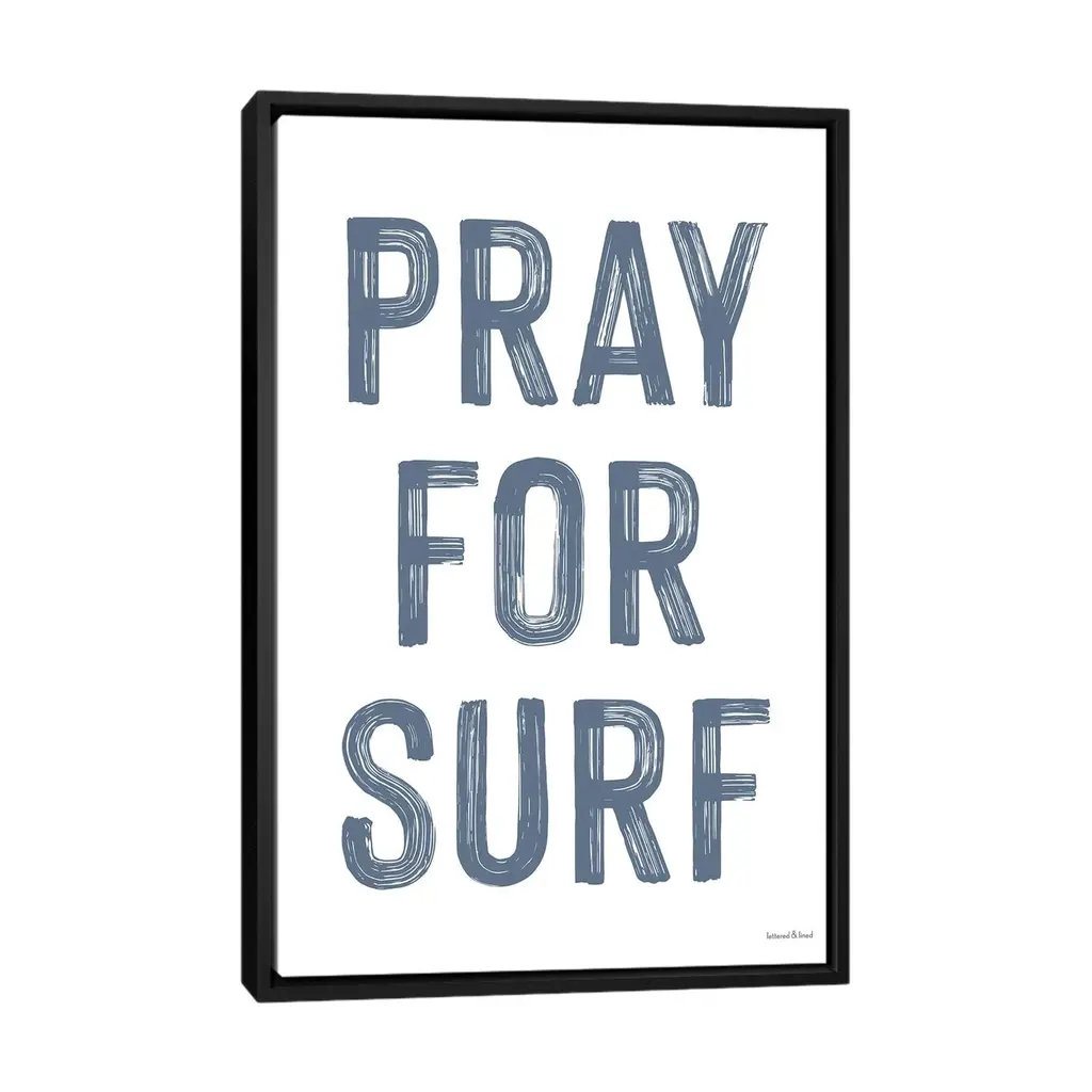 Icanvas "Pray For Surf" By Lettered & Lined Framed Canvas Print - Black - 40x26