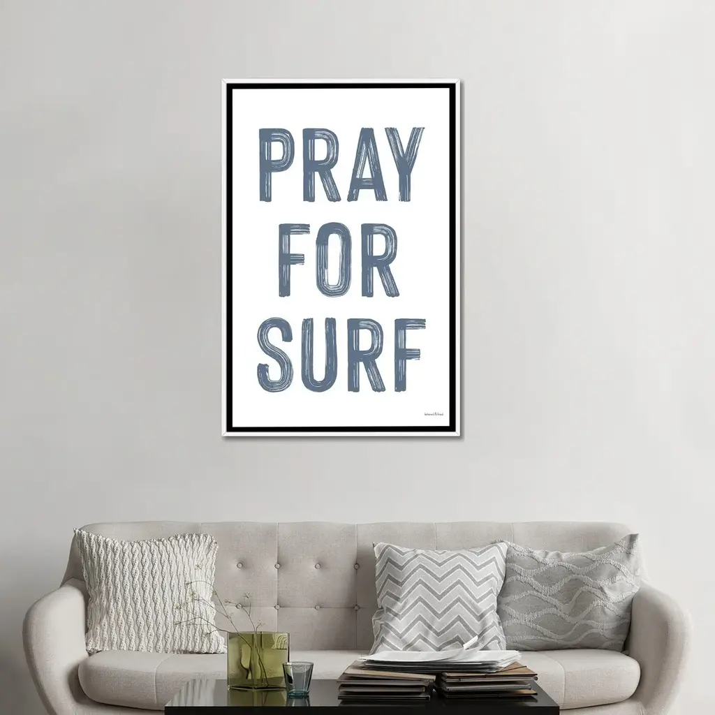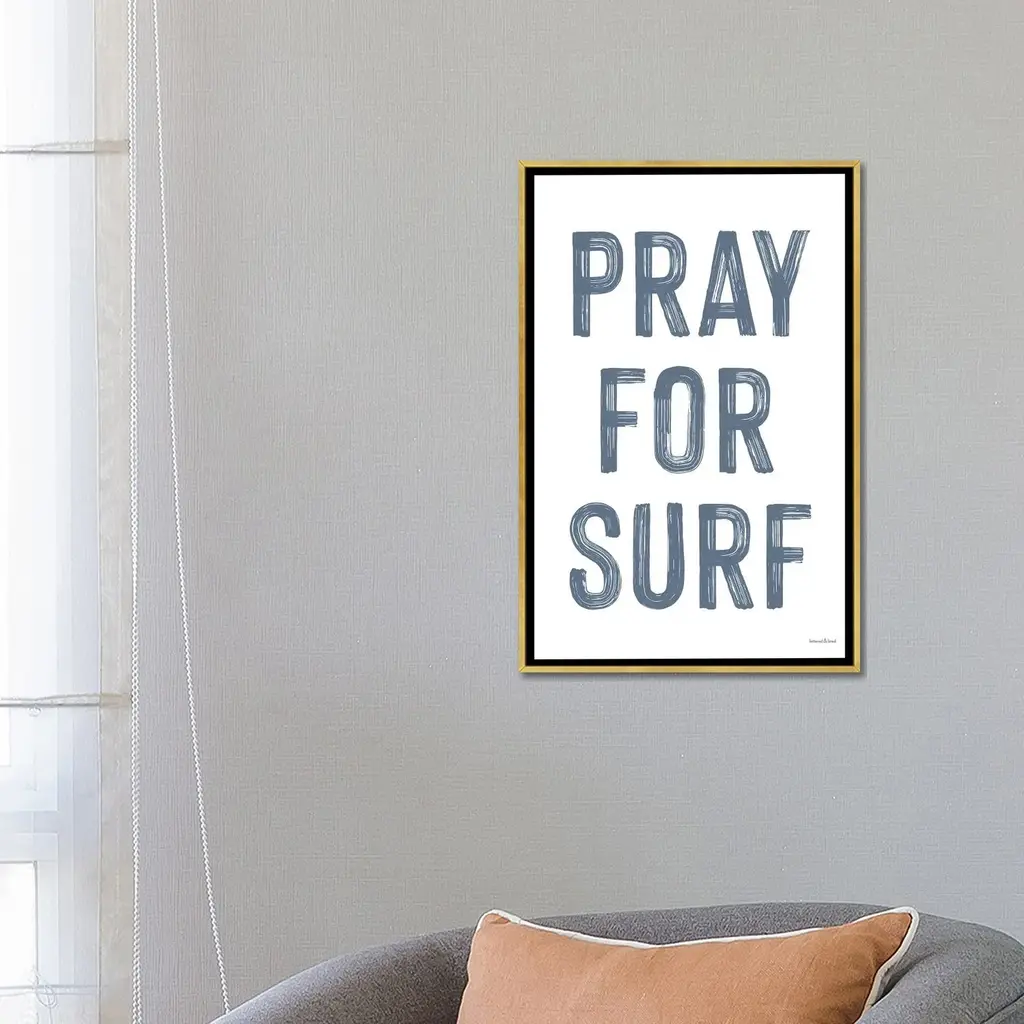 Icanvas "Pray For Surf" By Lettered & Lined Framed Canvas Print - Gold - 40x26