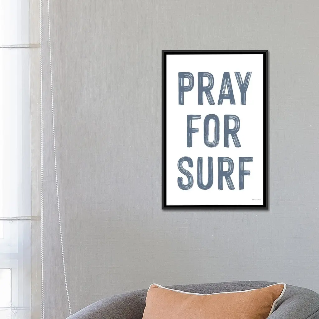 Icanvas "Pray For Surf" By Lettered & Lined Framed Canvas Print - White - 48x32