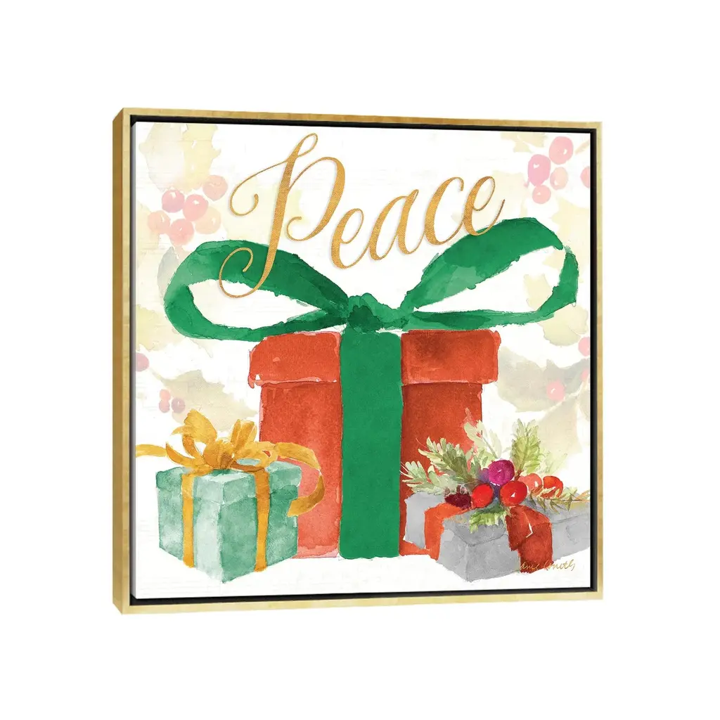Icanvas "Presents And Notes Iv" By Lanie Loreth Framed Canvas Print - Gold - 18x18
