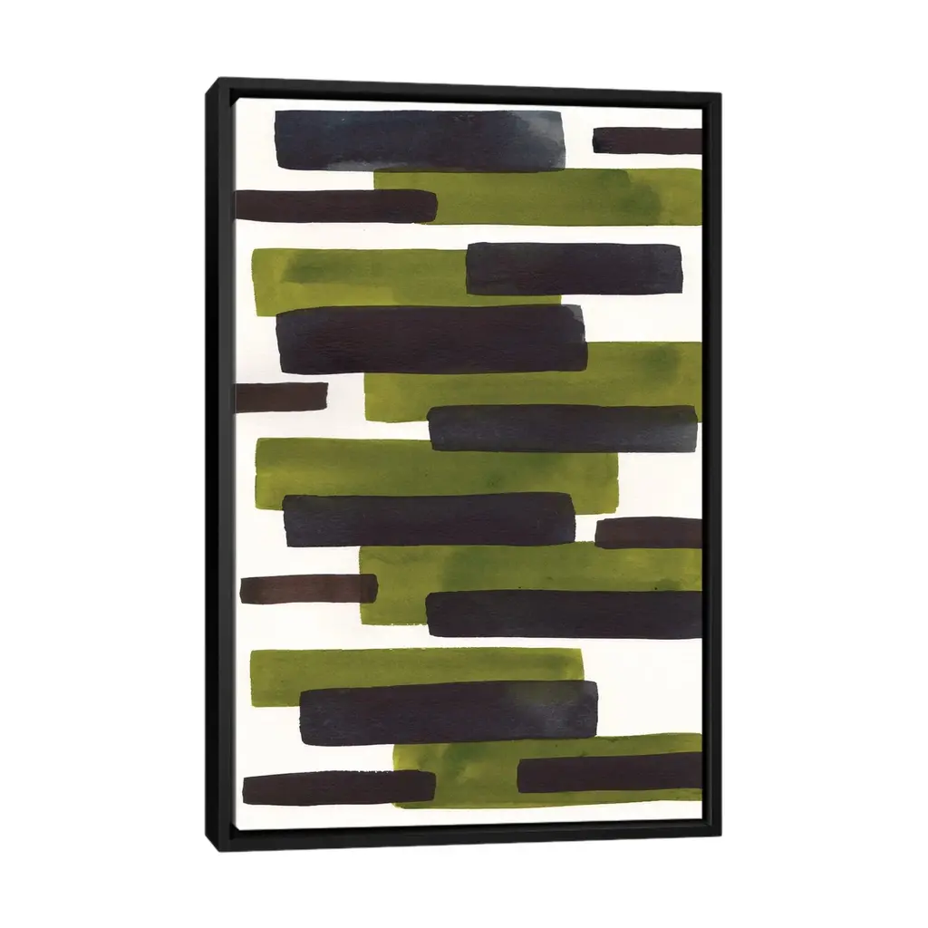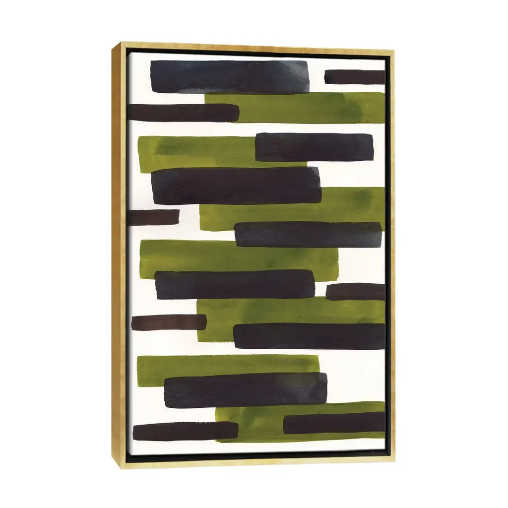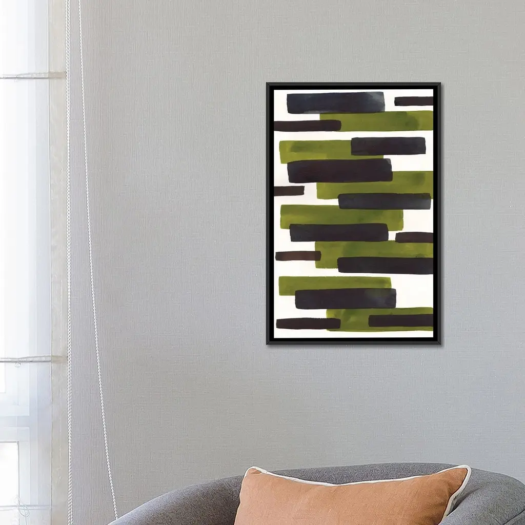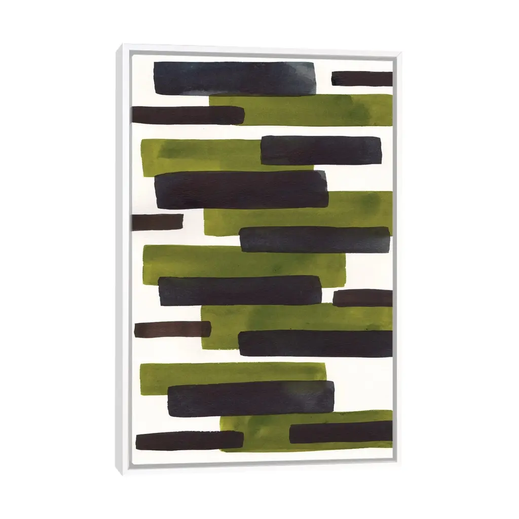 Icanvas "Primitive Olive Stripes" By Enshape Framed - White - 40x26