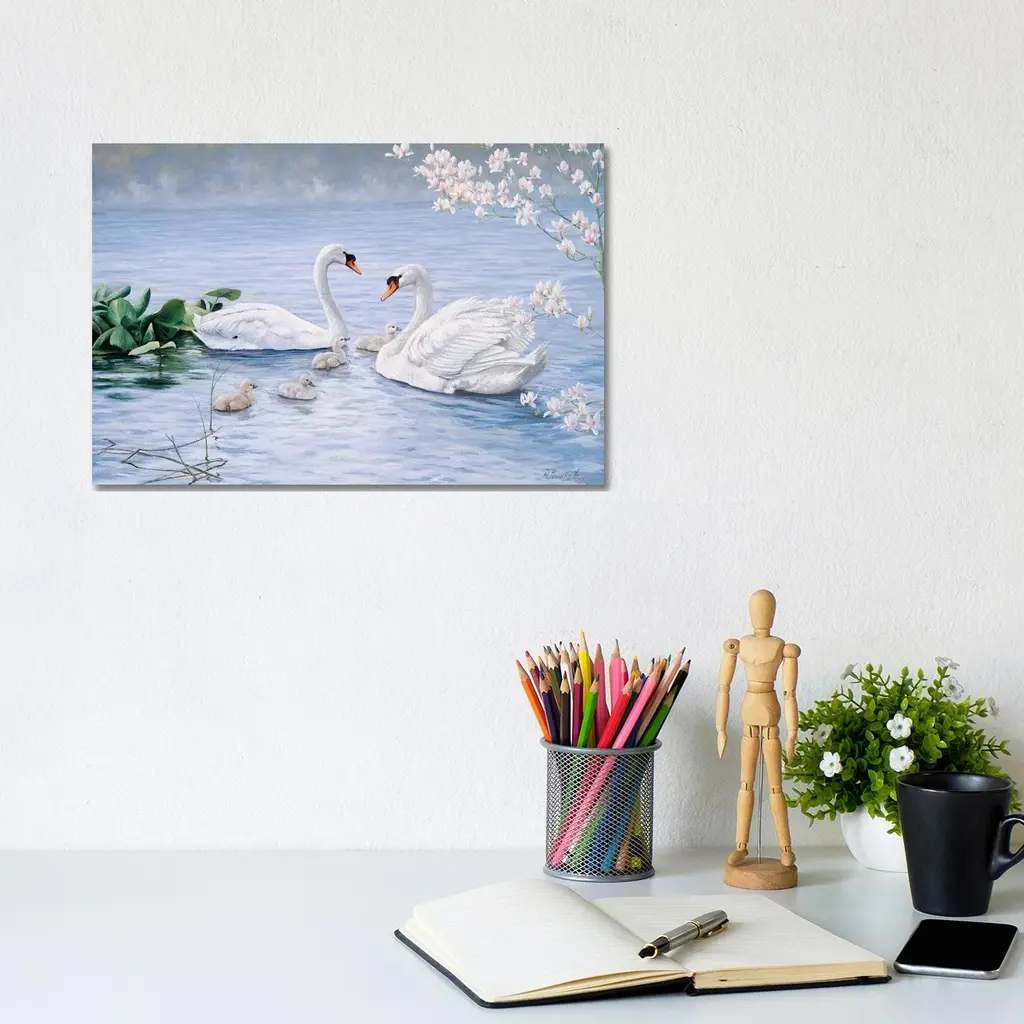 Icanvas "Proud Swan Family" By Peter Motz Canvas Print - 26x40x1.5