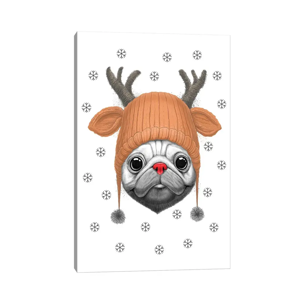 Icanvas "Pug Rudolph" By Nikita Korenkov Canvas Print - 48x32x1.5