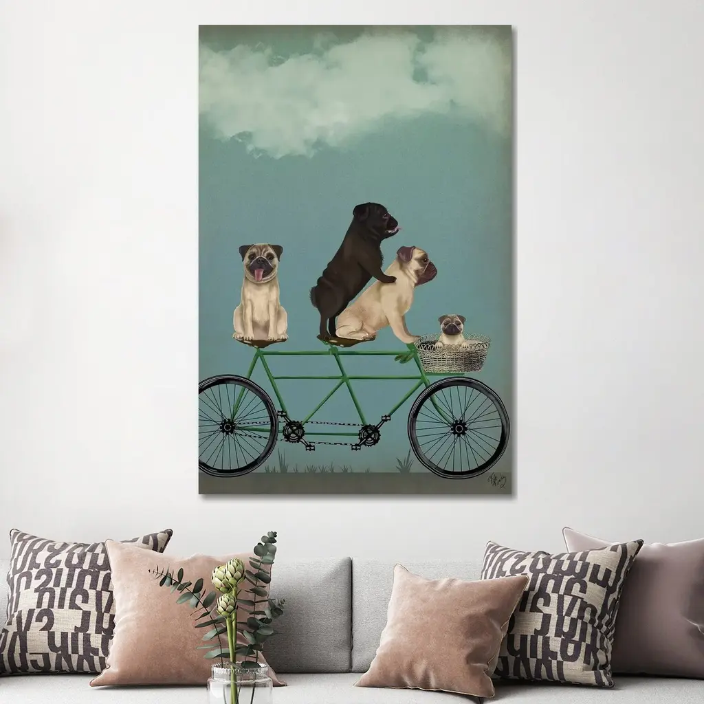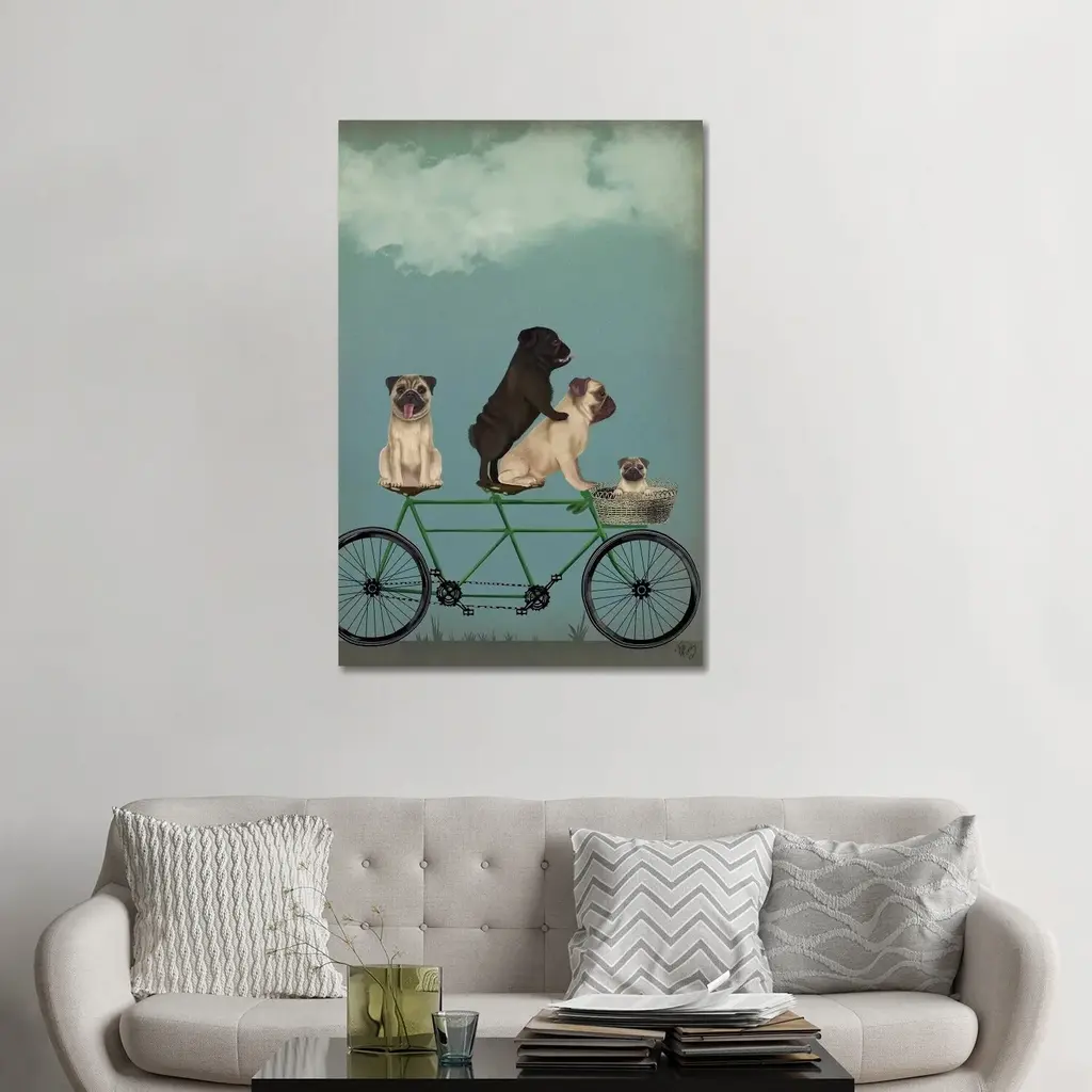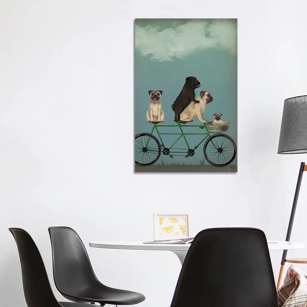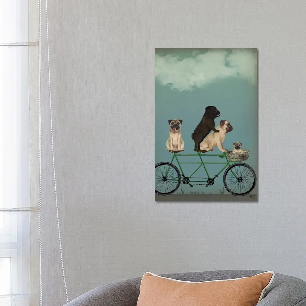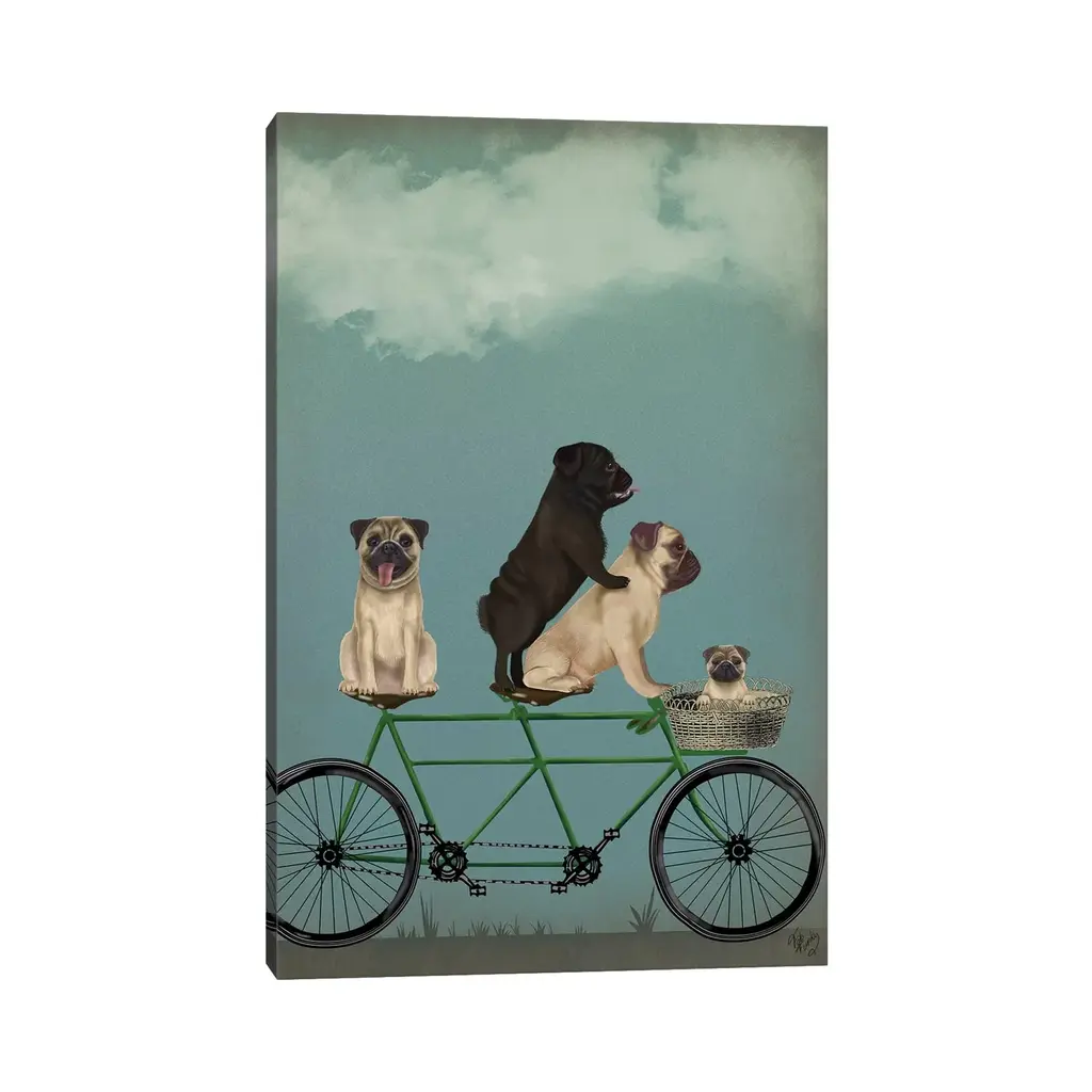 Icanvas "Pug Tandem" By Fab Funky Canvas Print - 12x8x0.75