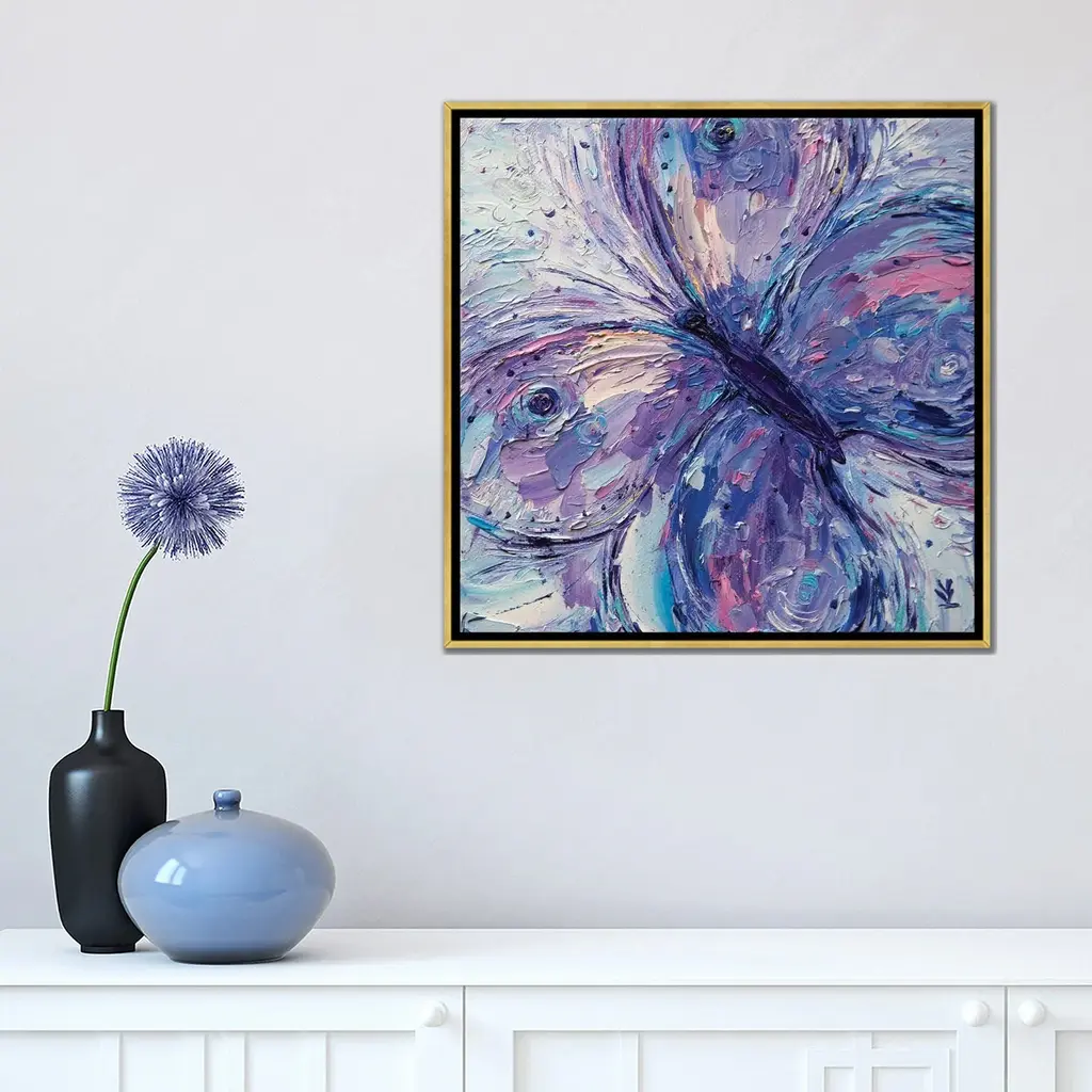 Icanvas "Purple Butterfly" By Vlada Koval Framed Canvas Print - White - 12x12