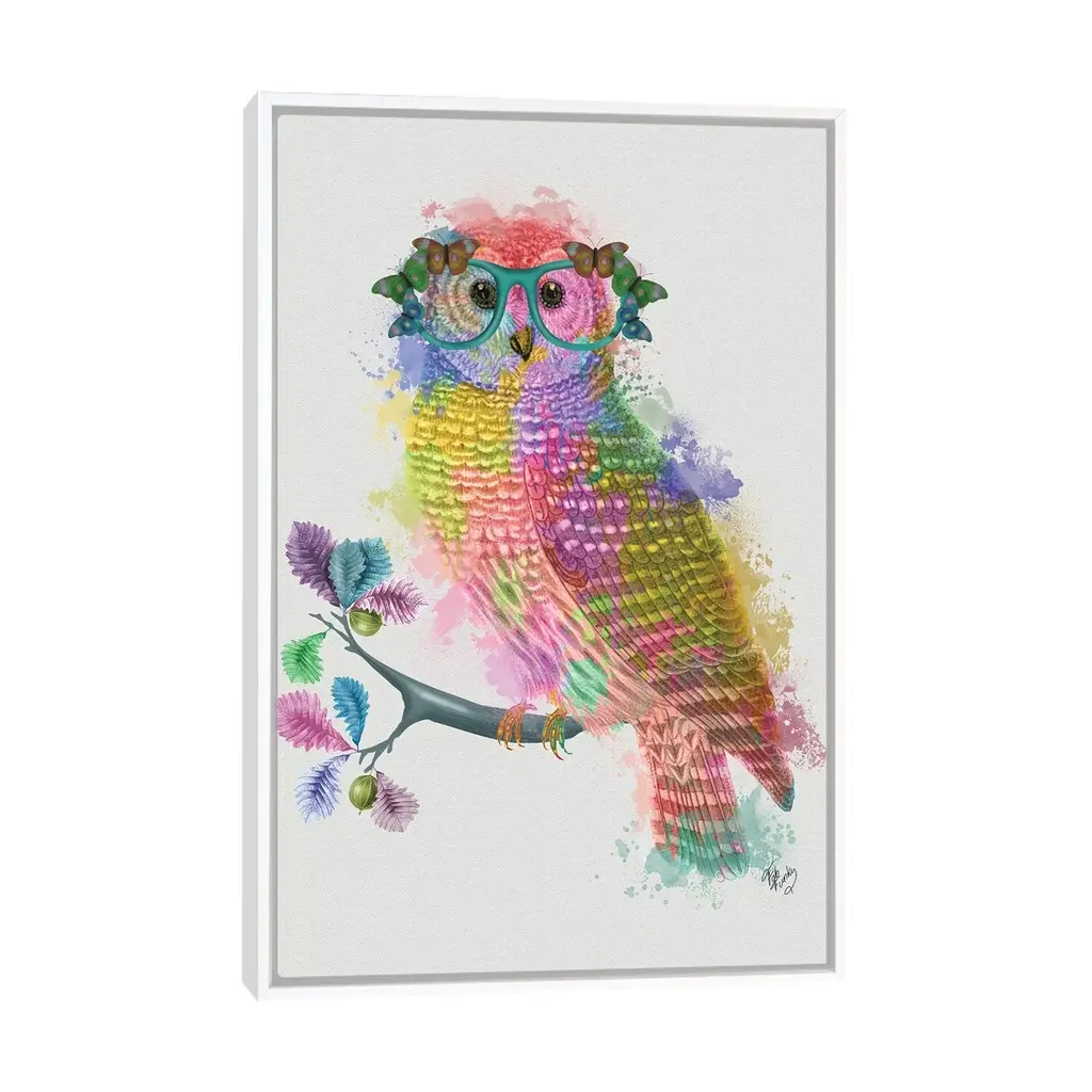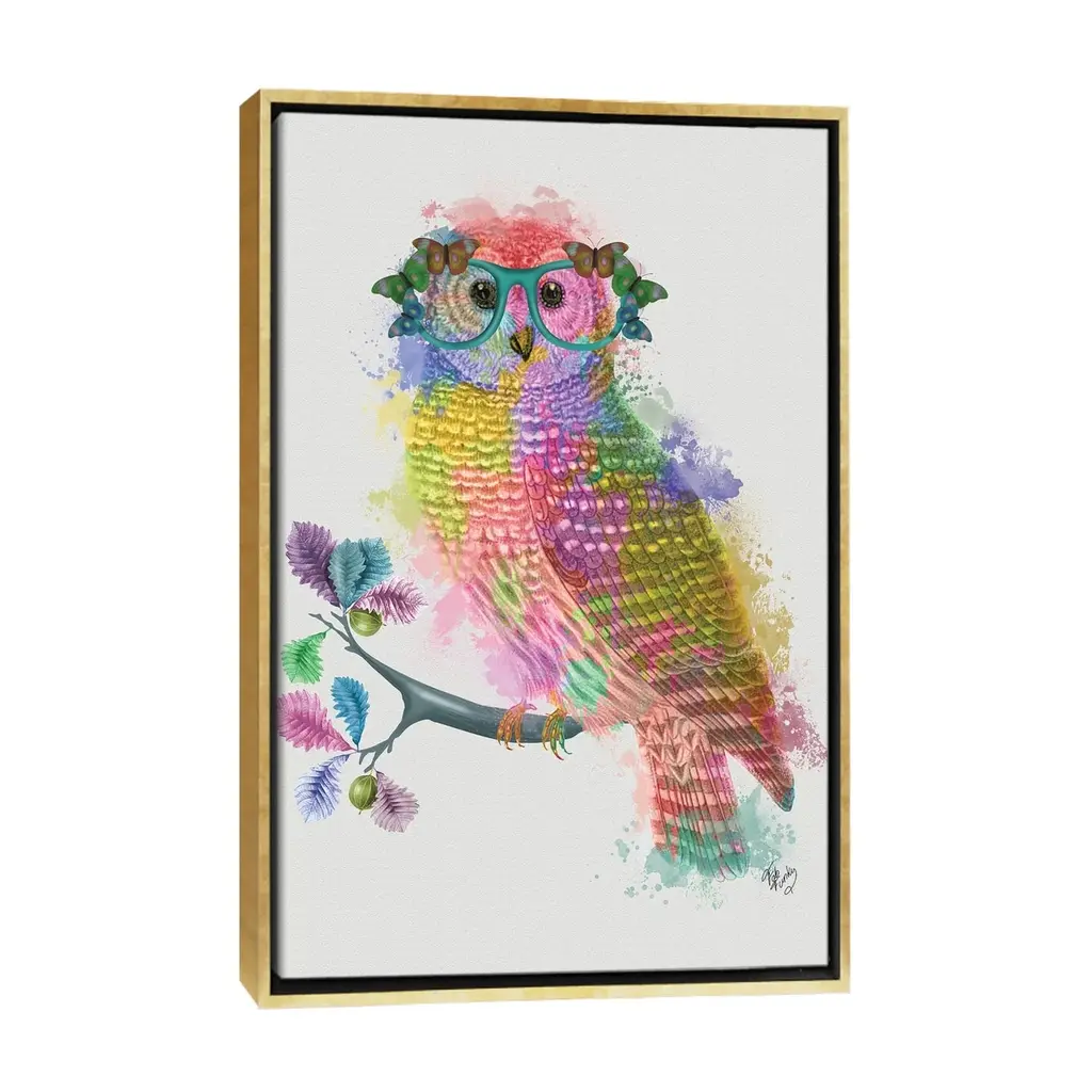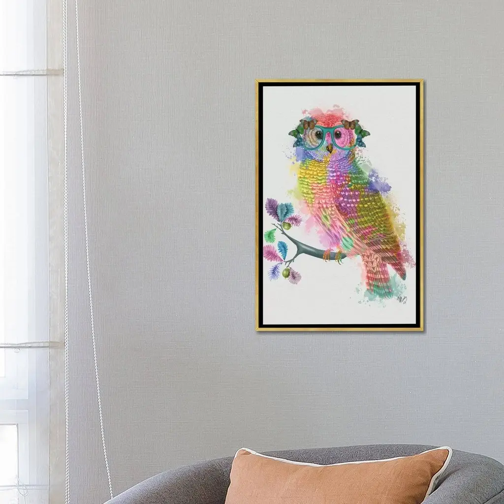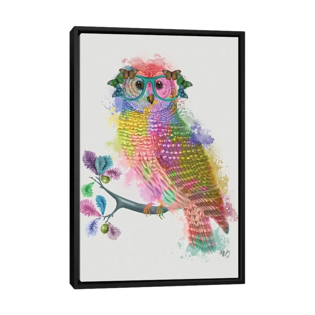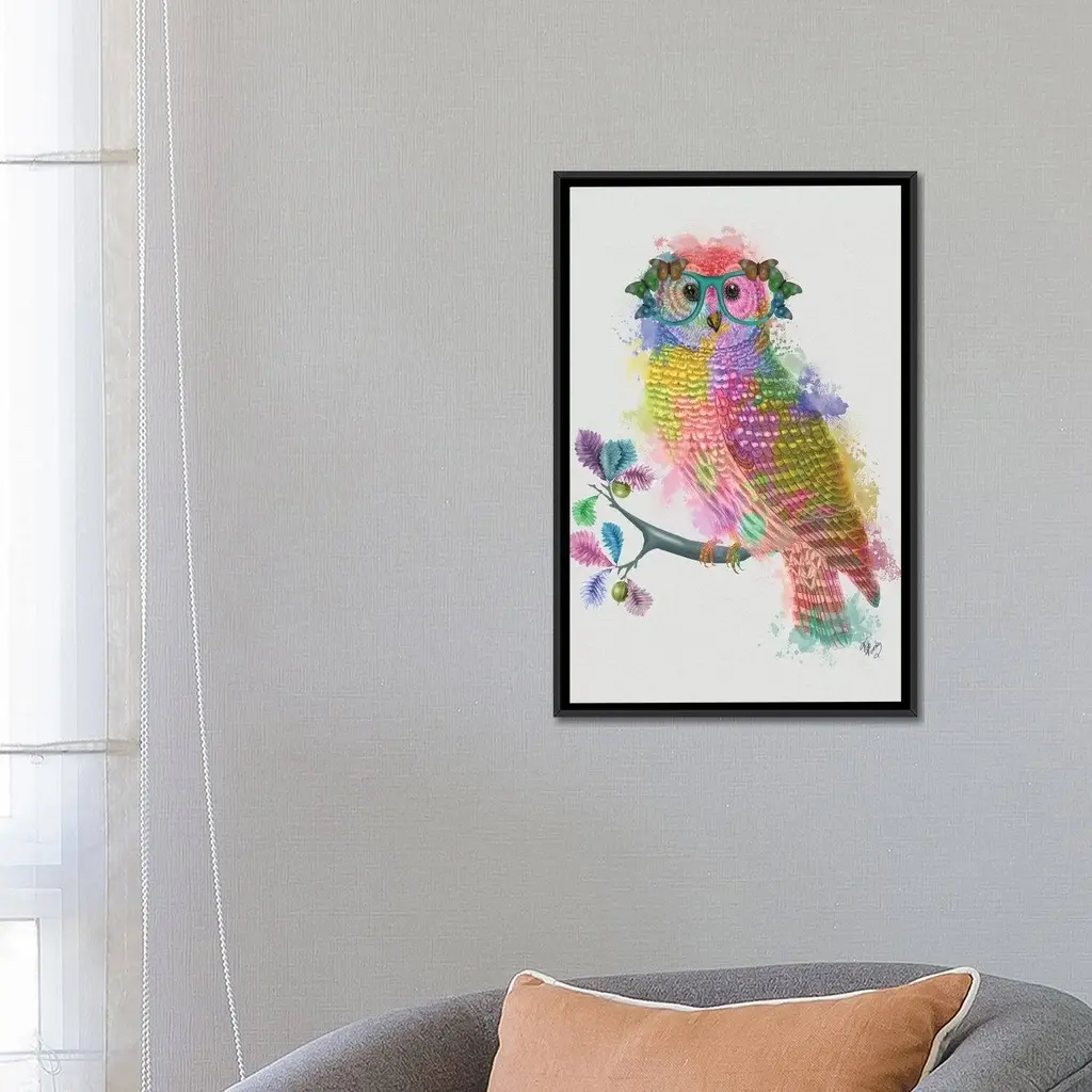 Icanvas "Rainbow Splash Owl" By Fab Funky Framed Canvas Print - Black - 26x18