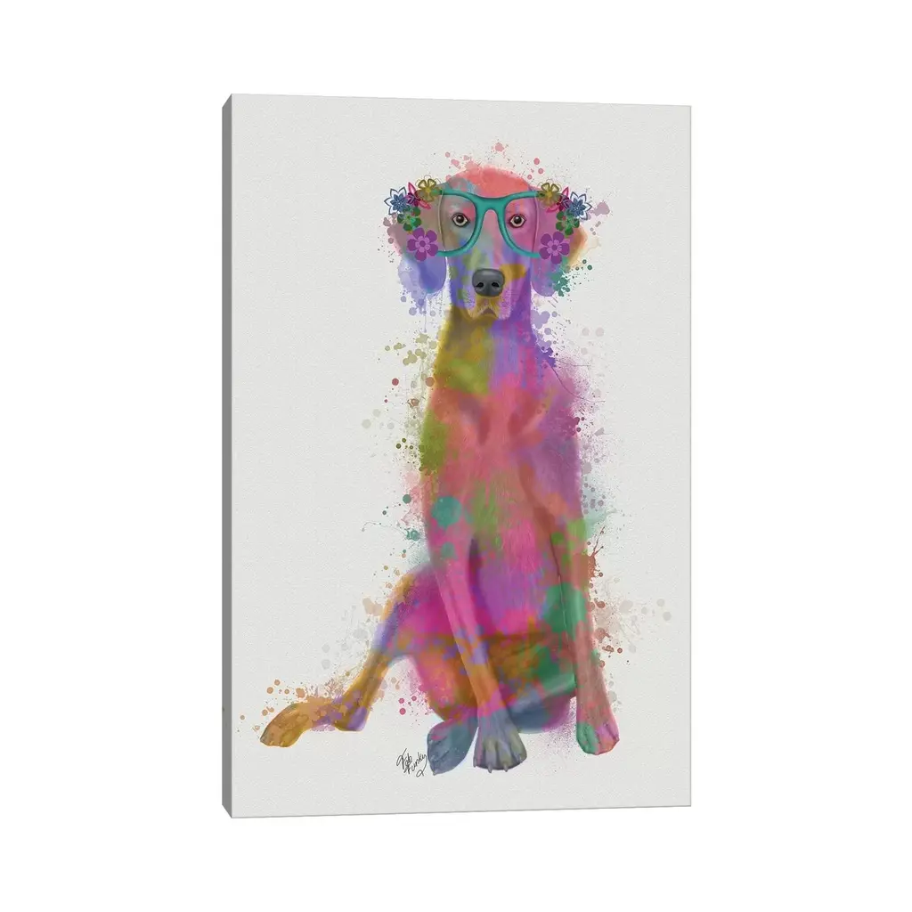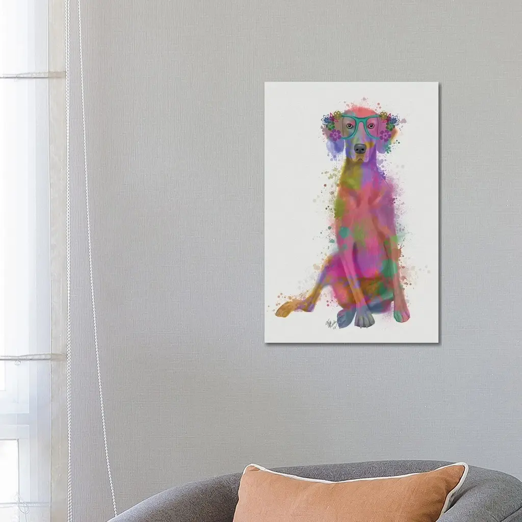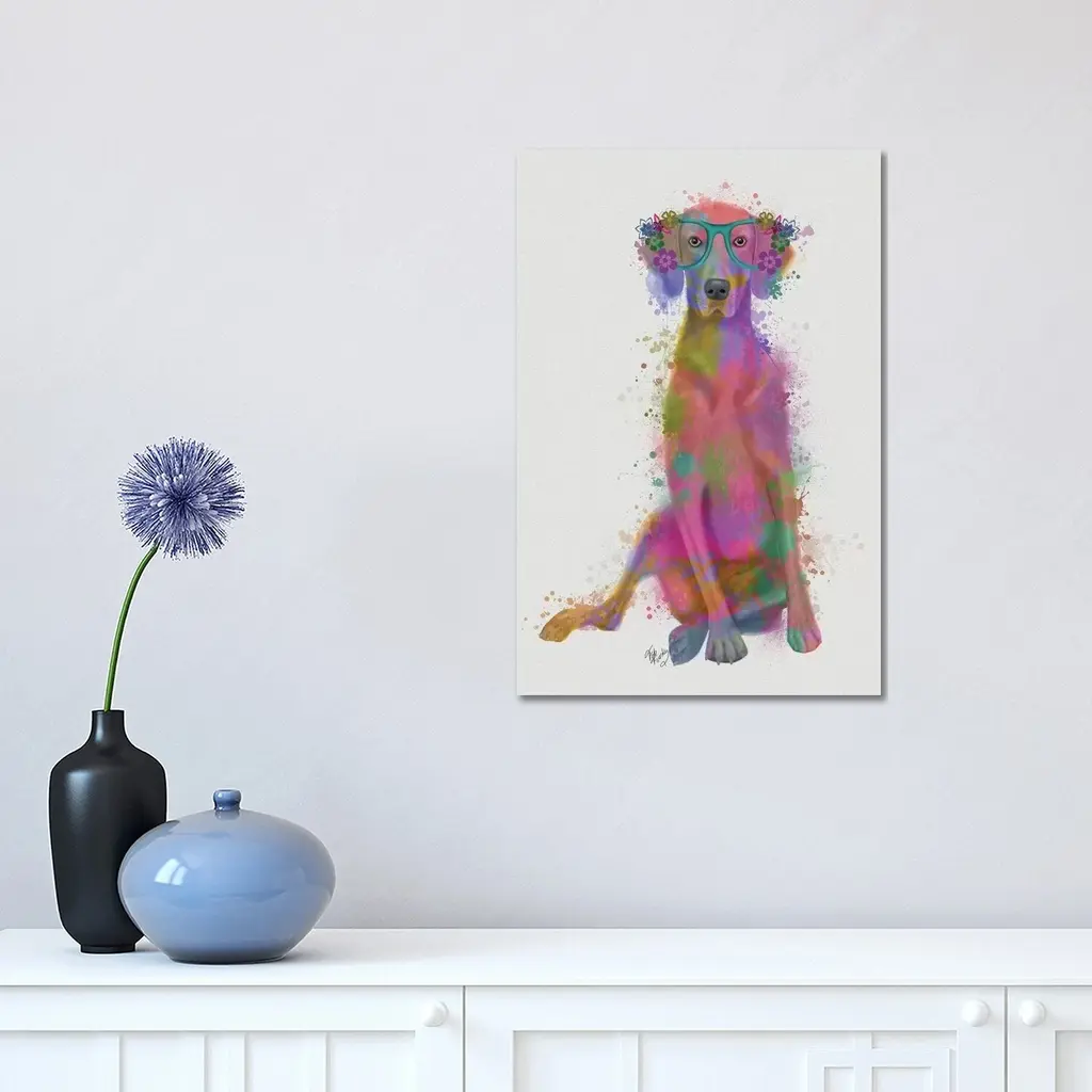 Icanvas "Rainbow Splash Weimaraner, Full" By Fab Funky Canvas Print - 12x8x0.75