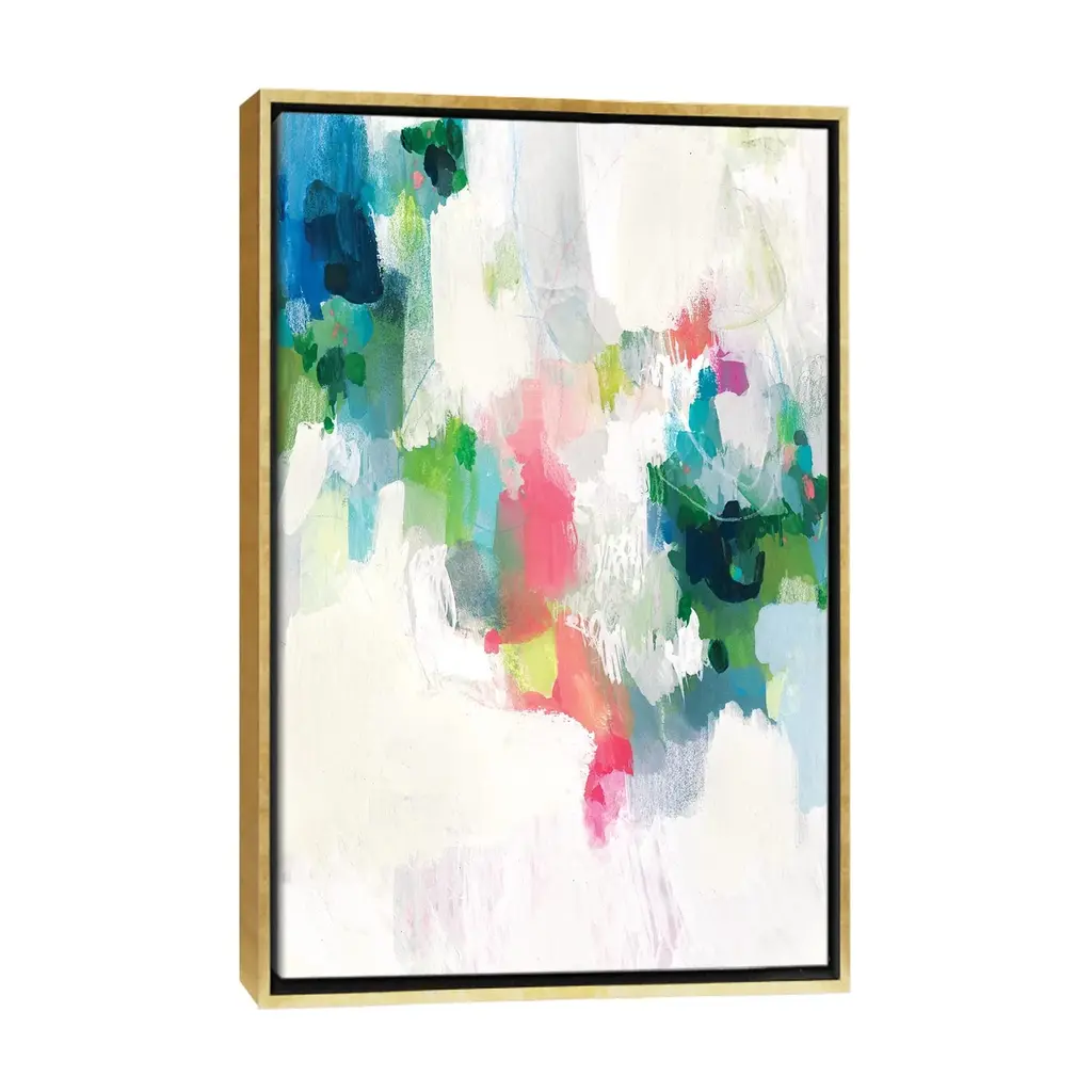 Icanvas "Raspberry & Teal Ii" By Victoria Borges Framed Canvas Print - Gold - 48x32