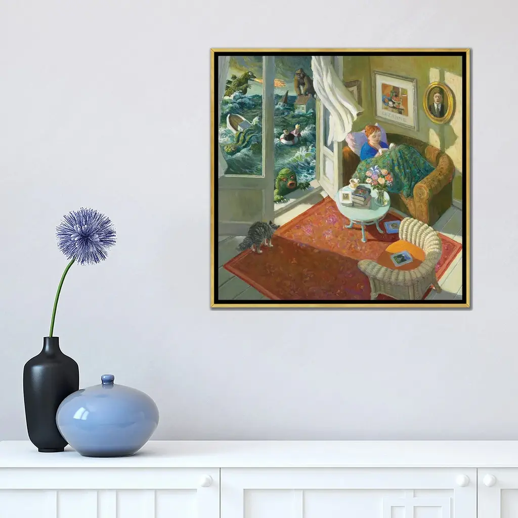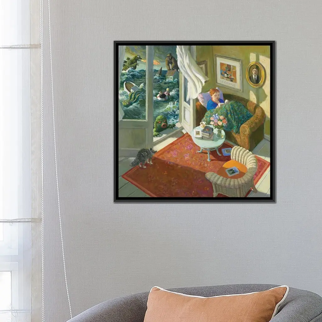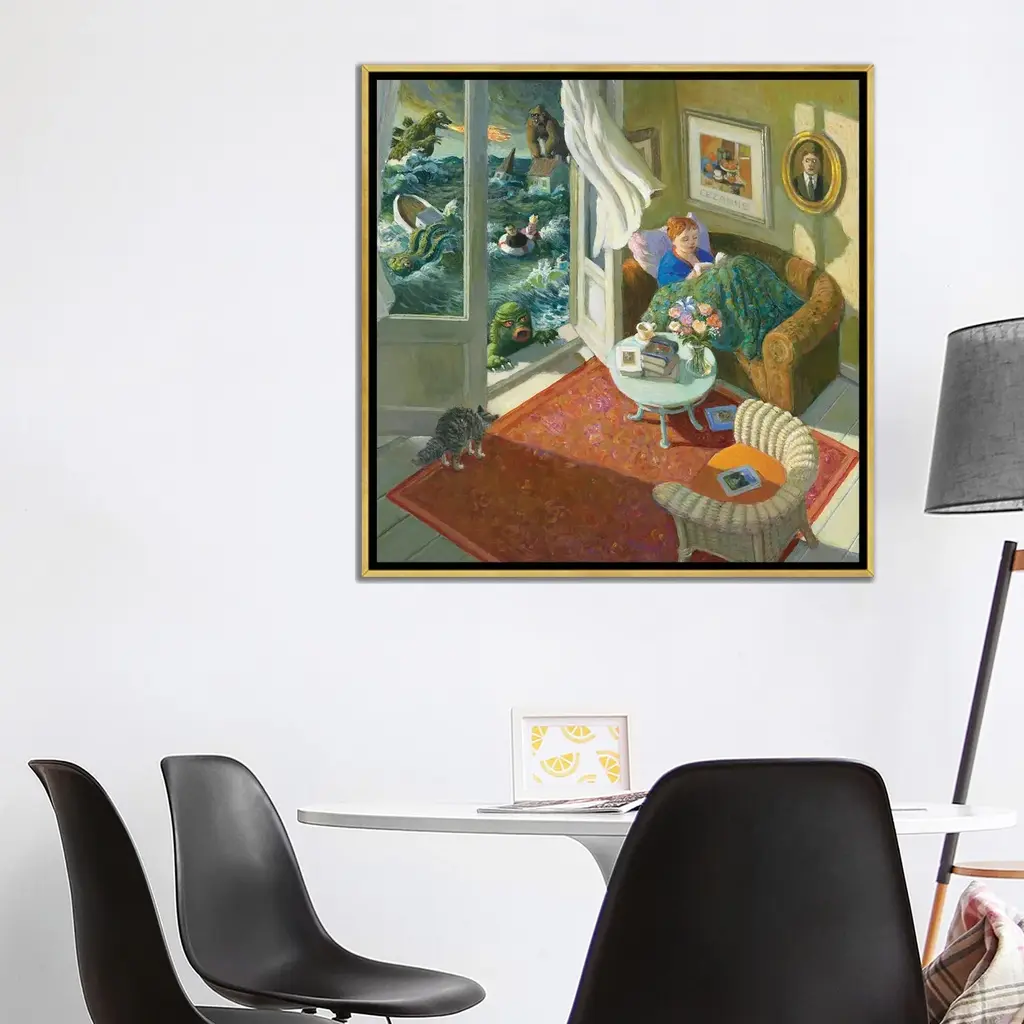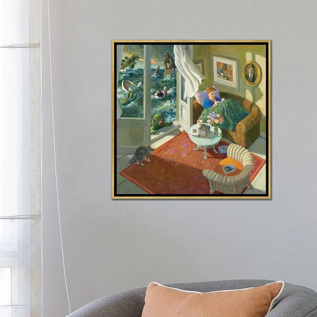 Icanvas "Rather Read" By Michael Sowa Framed Canvas Print - Gold - 26x26