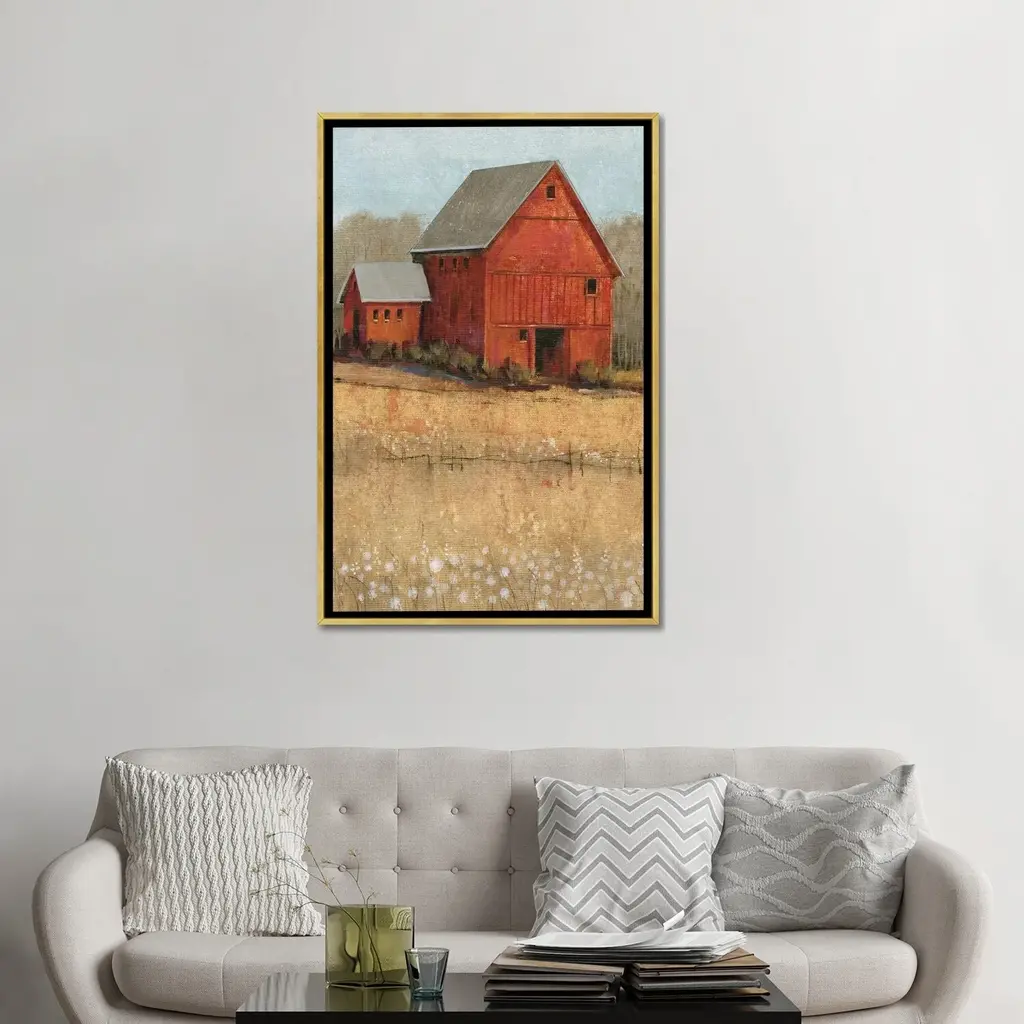 Icanvas "Red Barn View Ii" By Tim Otoole Framed Canvas Print - Gold - 26x18