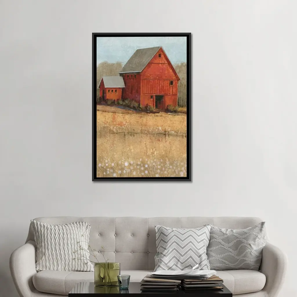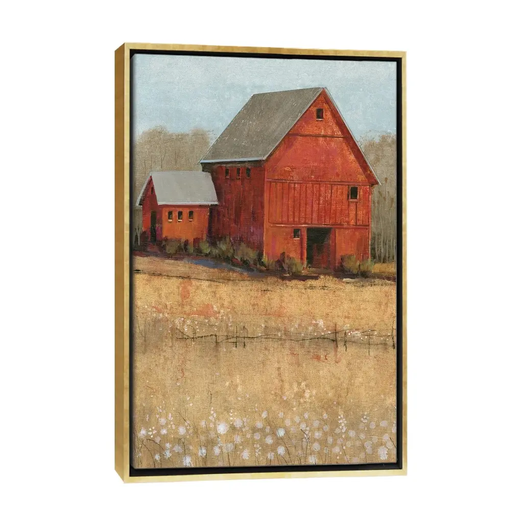 Icanvas "Red Barn View Ii" By Tim Otoole Framed Canvas Print - Gold - 48x32
