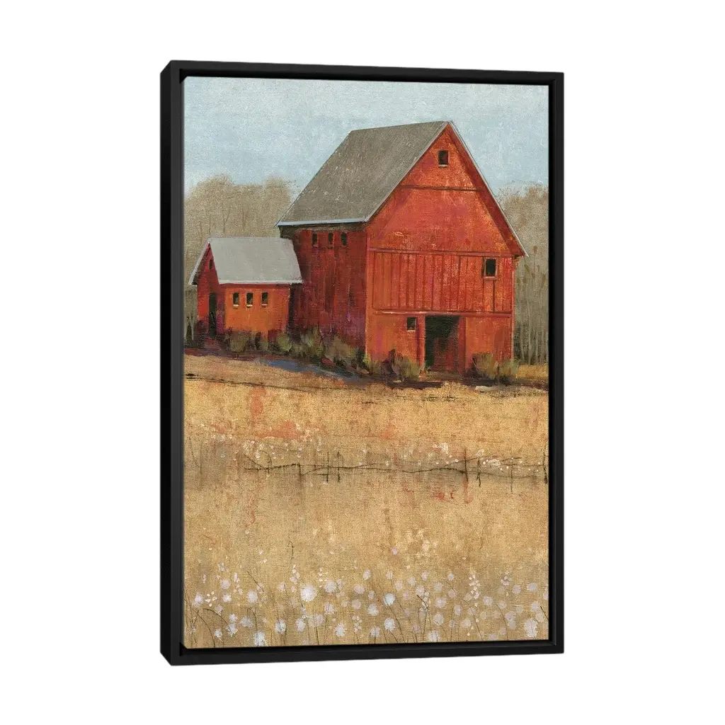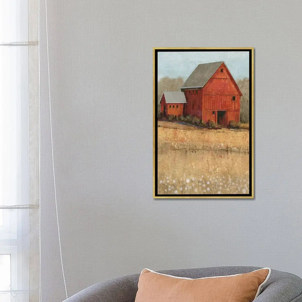 Icanvas "Red Barn View Ii" By Tim Otoole Framed Canvas Print - White - 40x26