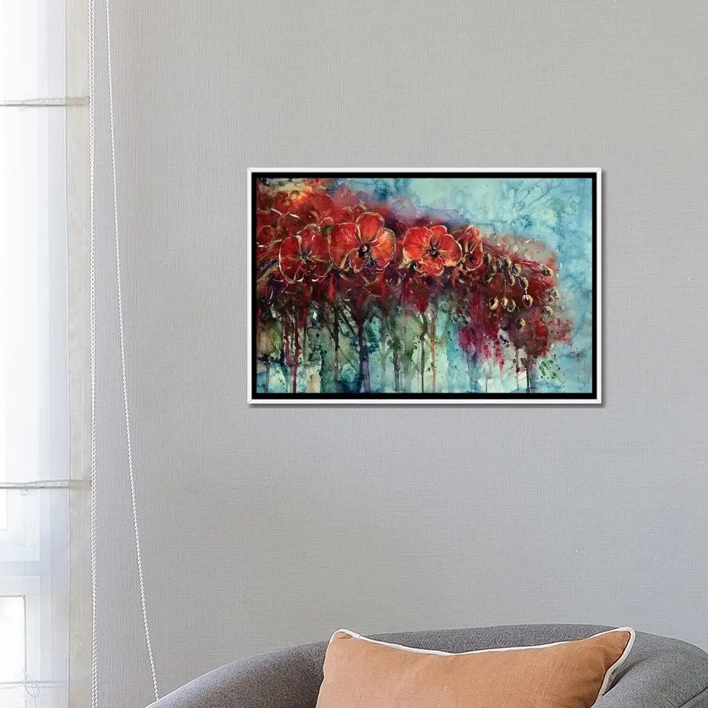 Icanvas "Red Orchids" By Zaira Dzhaubaeva Framed - White - 26x40