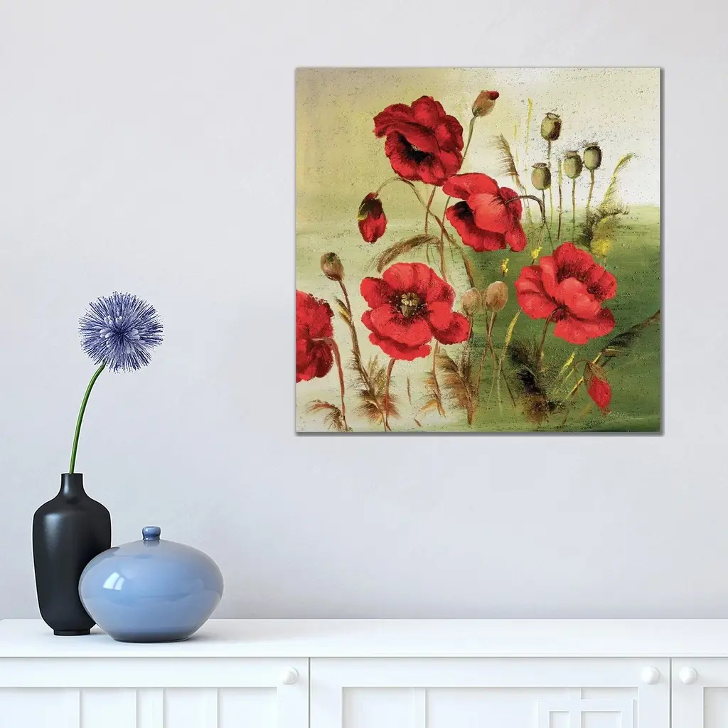 Icanvas "Red Poppies Composition I" By Katharina Schottler Canvas Print - 37x37x1.5