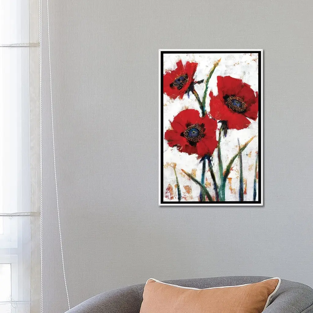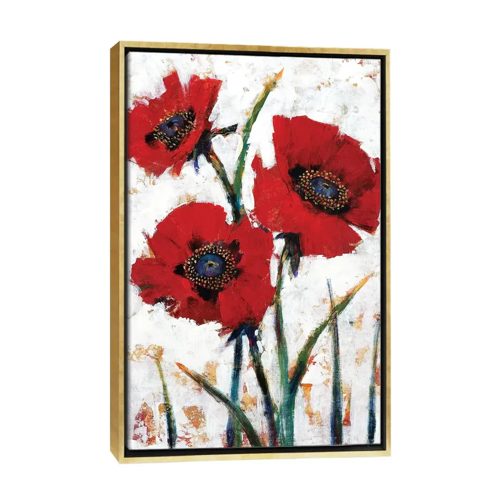 Icanvas "Red Poppy Fresco I" By Tim Otoole Framed Canvas Print - Gold - 40x26