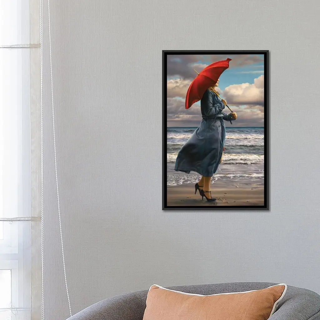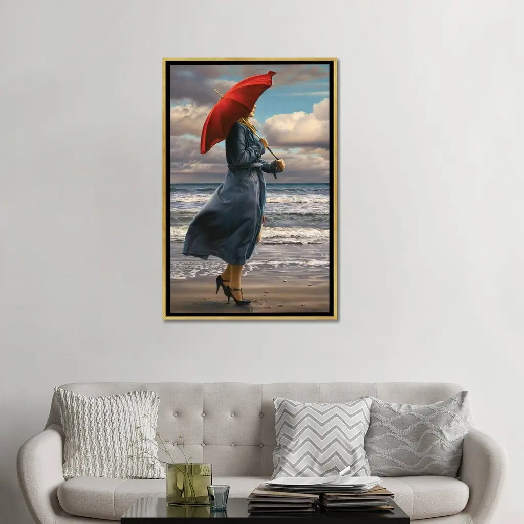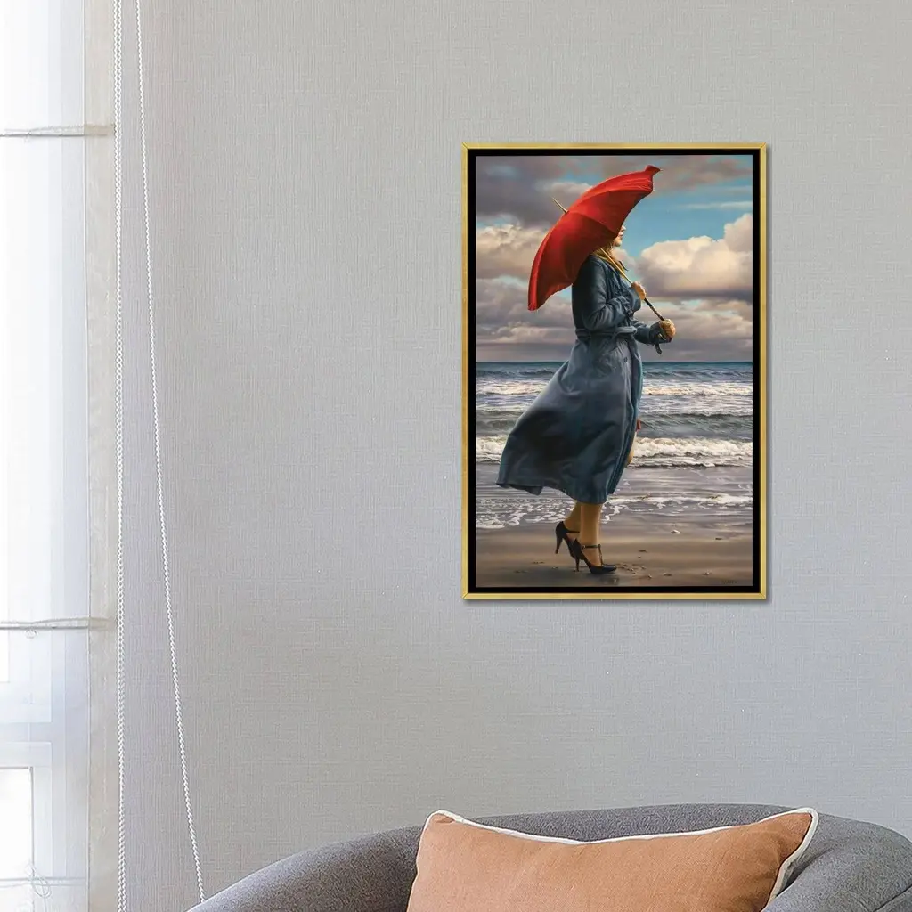 Icanvas "Red Umbrella" By Paul Kelley Framed - Gold - 26x18