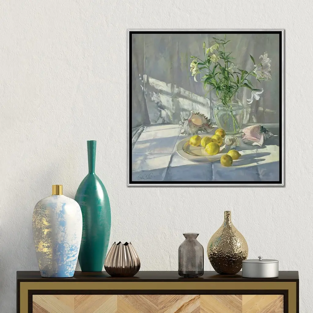 Great Art Deserves to be on Canvas! Unlike thin posters and paper prints, Giclee canvas artwork offers the texture, look and feel of fine-art paintings. This artwork is crafted in the USA with artist-grade canvas, professionally hand-stretched and stapled over North American pine-wood bars in Gallery Wrap style; a method utilized by artists to present artwork in galleries. Your Gallery-Wrapped Canvas comes mounted to a 2 inch thick, elegant hard wood frame. The art is inset, leaving a 3/8" space between the art and frame; creating a "floating" illusion. Fade-resistant archival inks guarantee perfect color reproduction that remains vibrant for decades even when exposed to strong light. Add brilliance in color and exceptional detail to your space with this contemporary and uncompromising style!