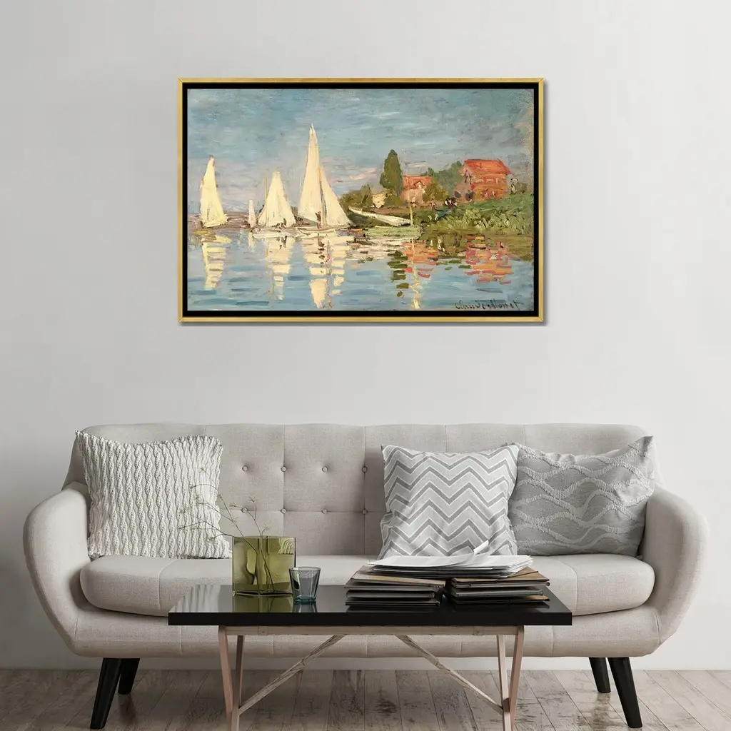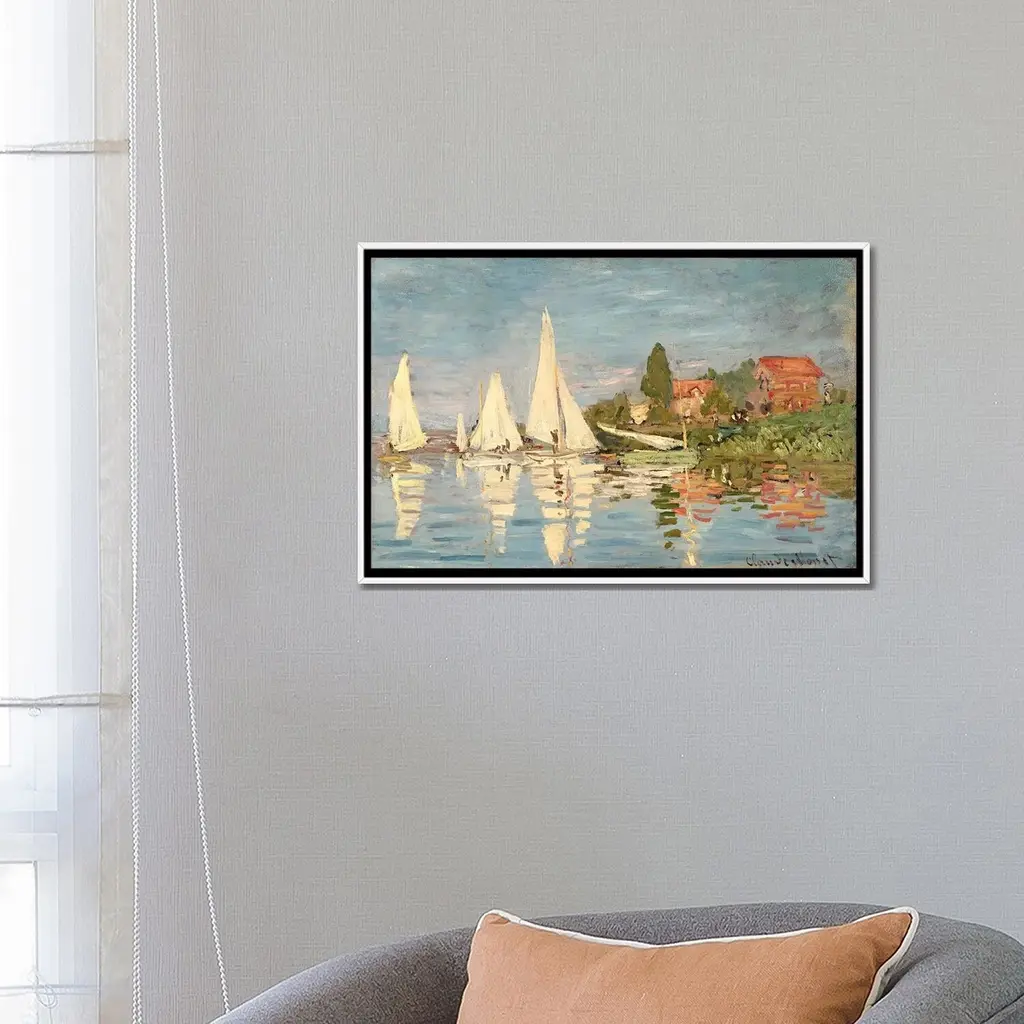 Icanvas "Regatta At Argenteuil, C.1872 " By Claude Monet Framed Canvas Print - White - 18x26