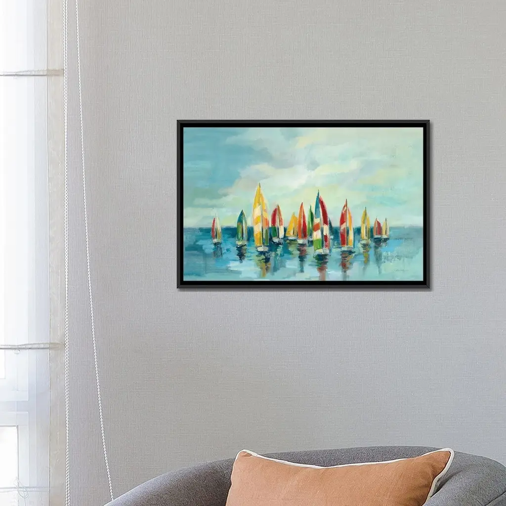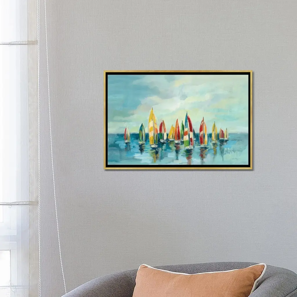 Icanvas "Regatta" By Silvia Vassileva Framed Canvas Print - Gold - 26x40
