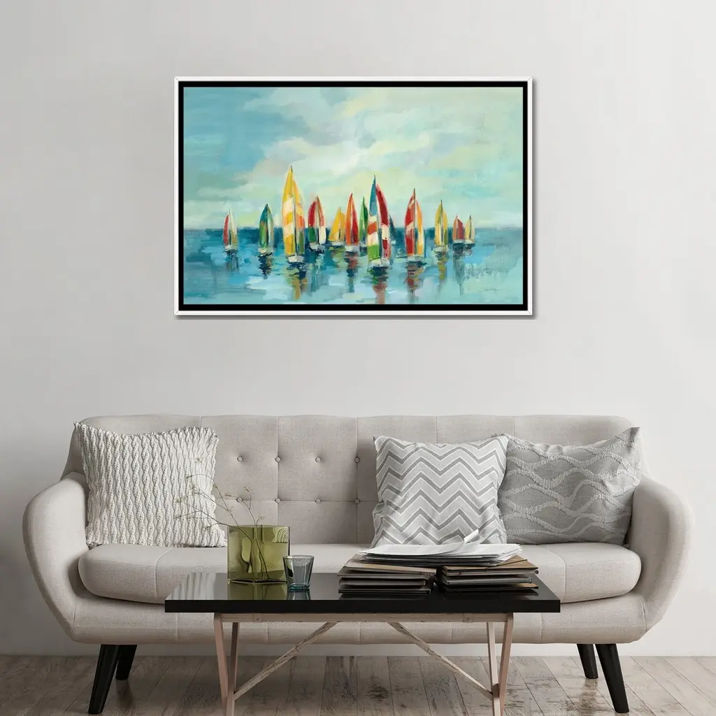Icanvas "Regatta" By Silvia Vassileva Framed Canvas Print - Gold - 32x48