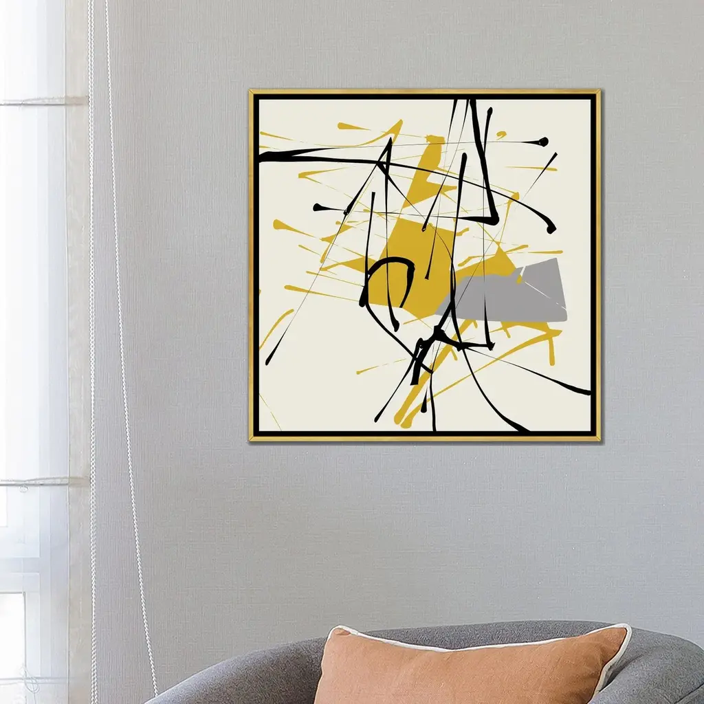 Icanvas "Remembering Pollock" By Angel Estevez Framed Canvas Print - Black - 18x18