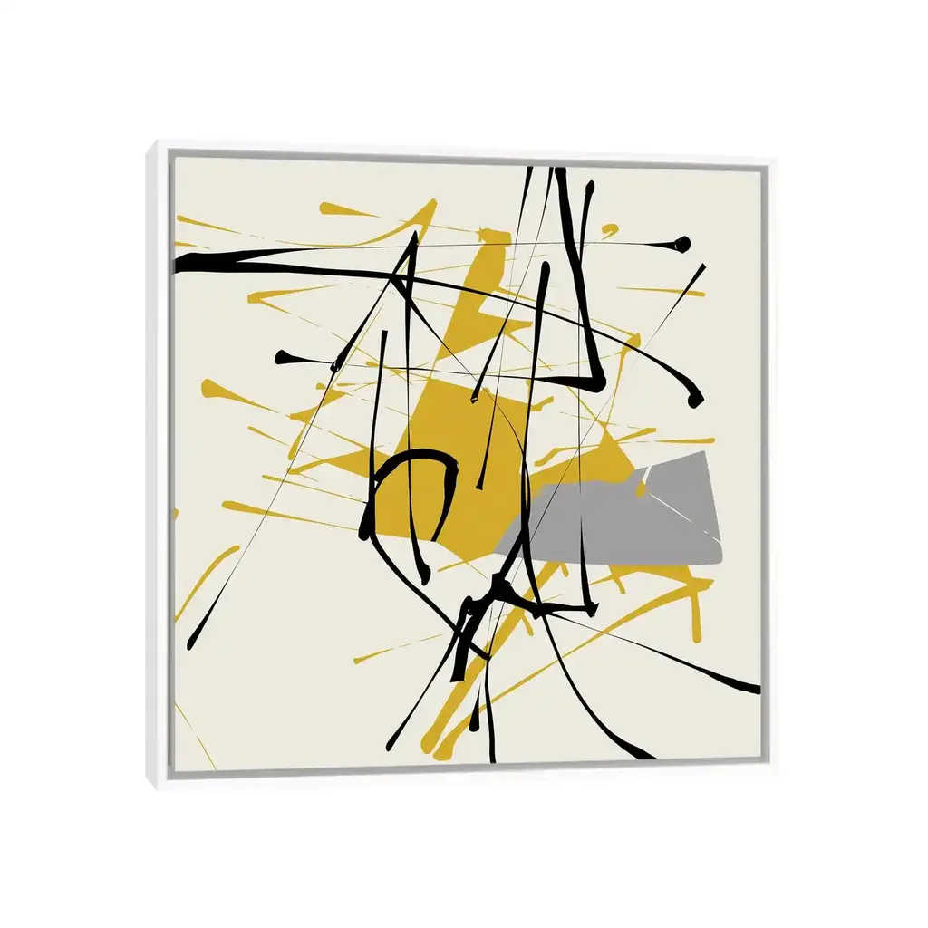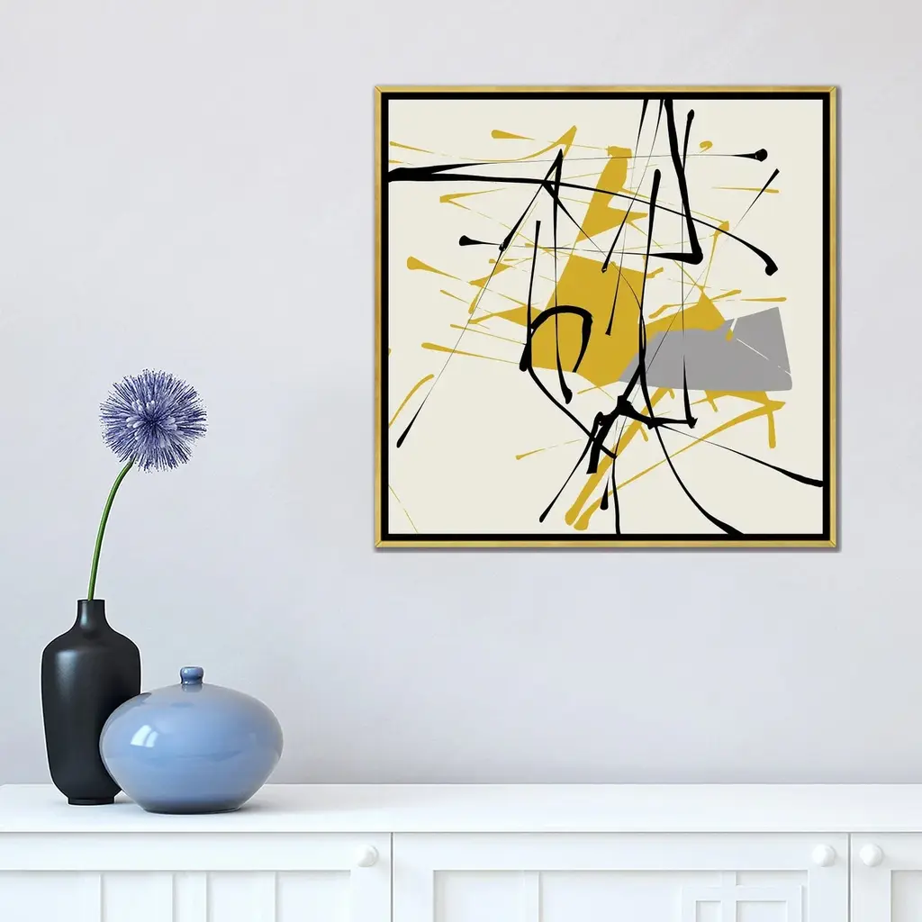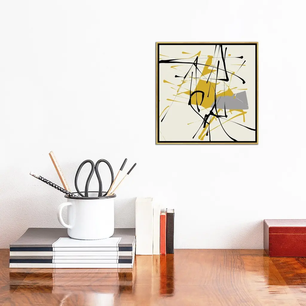 Icanvas "Remembering Pollock" By Angel Estevez Framed Canvas Print - Gold - 12x12