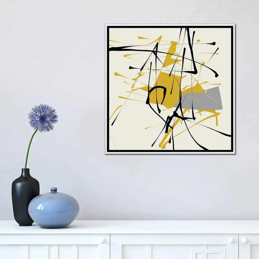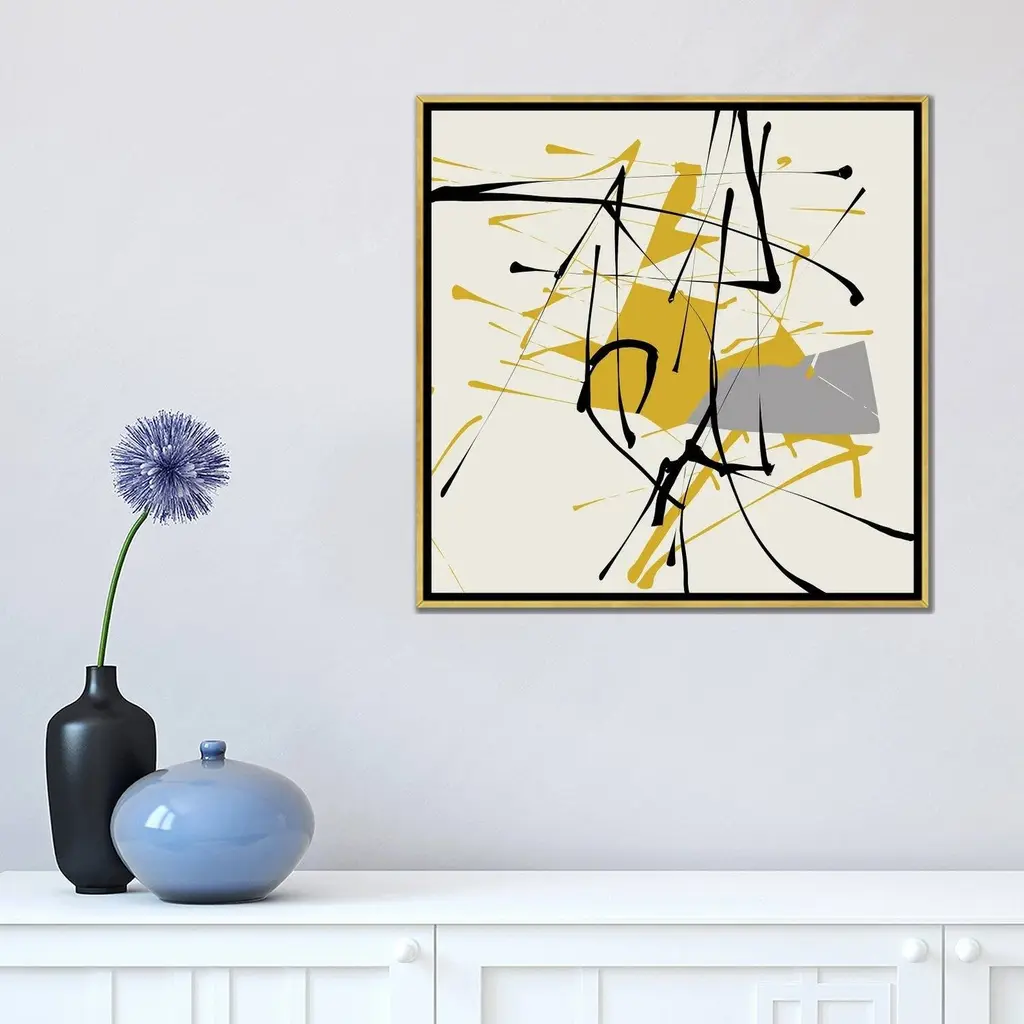 Icanvas "Remembering Pollock" By Angel Estevez Framed Canvas Print - Gold - 26x26