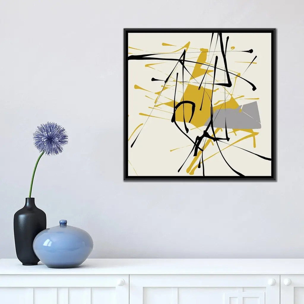 Icanvas "Remembering Pollock" By Angel Estevez Framed Canvas Print - Gold - 37x37