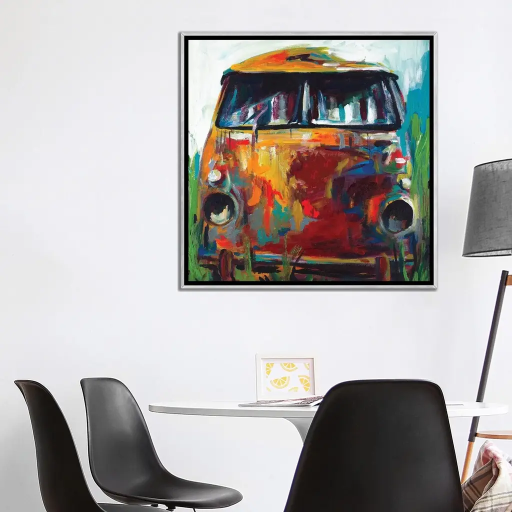 Icanvas "Retro Love Bus" By Andy Beauchamp Framed - Ebony - 26x26