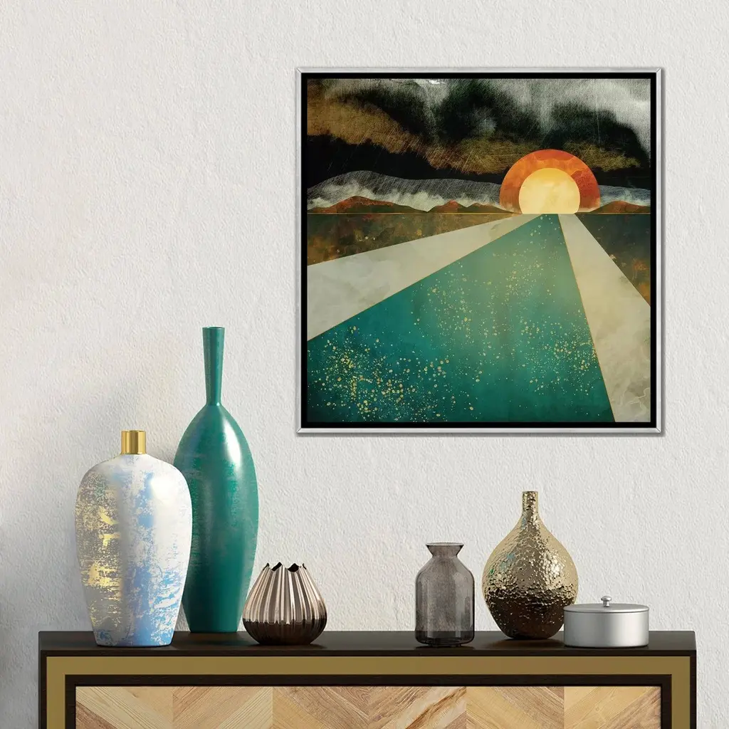 Great Art Deserves to be on Canvas! Unlike thin posters and paper prints, Giclee canvas artwork offers the texture, look and feel of fine-art paintings. This artwork is crafted in the USA with artist-grade canvas, professionally hand-stretched and stapled over North American pine-wood bars in Gallery Wrap style; a method utilized by artists to present artwork in galleries. Your Gallery-Wrapped Canvas comes mounted to a 2 inch thick, elegant hard wood frame. The art is inset, leaving a 3/8" space between the art and frame; creating a "floating" illusion. Fade-resistant archival inks guarantee perfect color reproduction that remains vibrant for decades even when exposed to strong light. Add brilliance in color and exceptional detail to your space with this contemporary and uncompromising style!