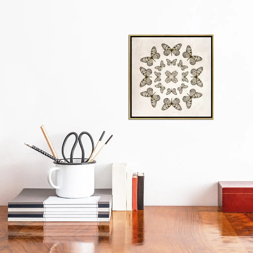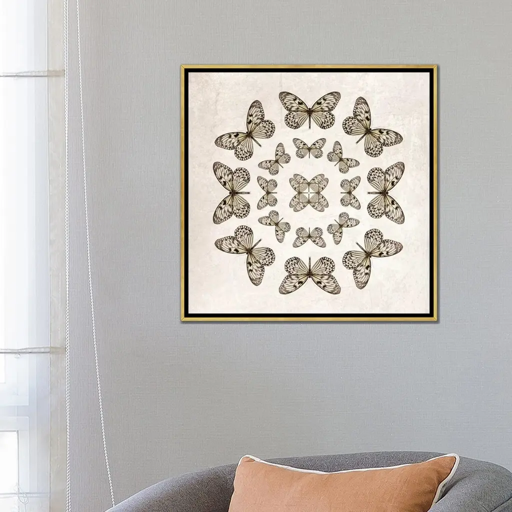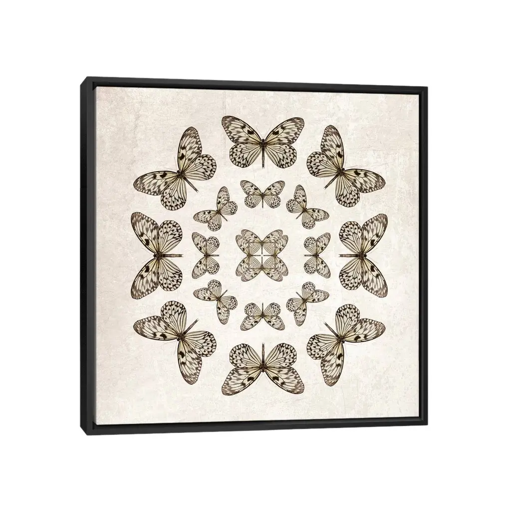 Icanvas "Rice Paper Butterfly Circles" By Alyson Fennell Framed Canvas Print - Black - 26x26