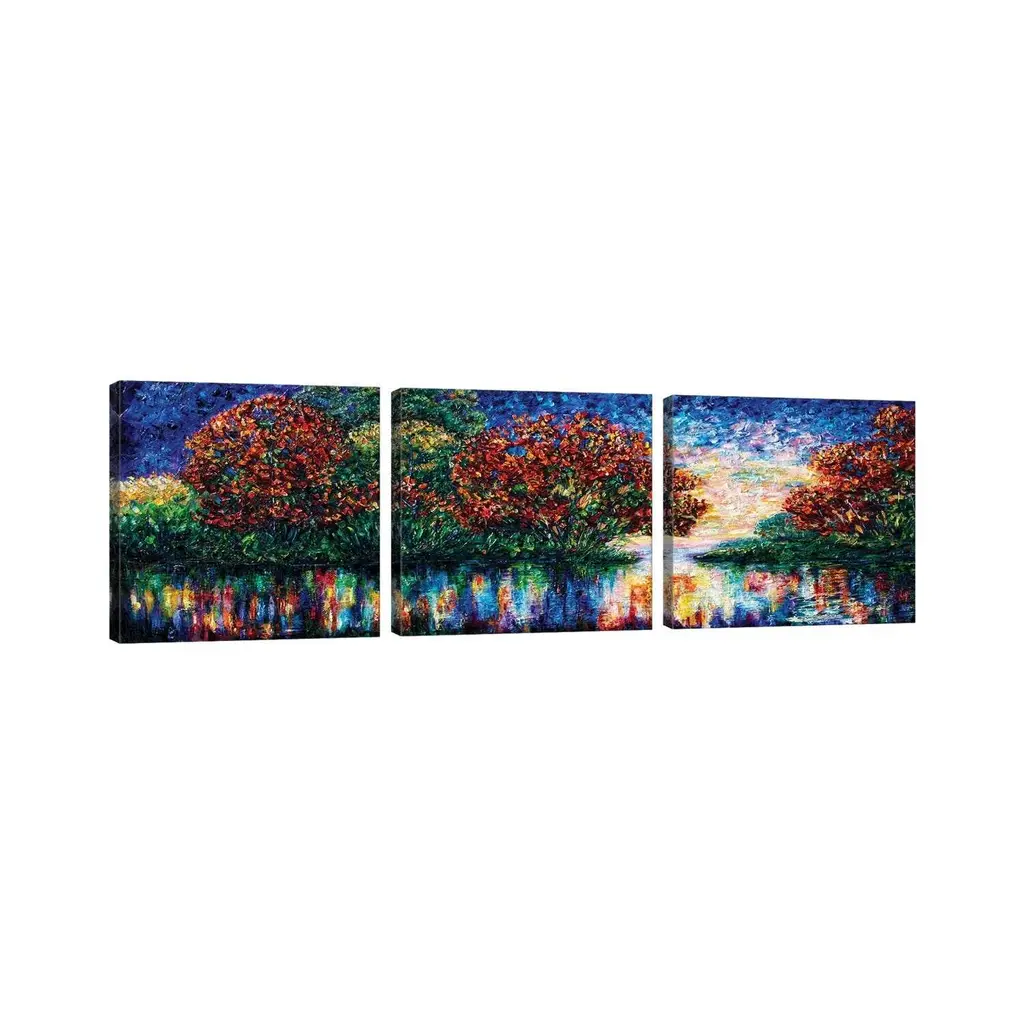 Icanvas "Rippled Sunset Palette Knife Painting" By Olena Art 3-Piece Canvas Wall Art Set - 12x36x1.5
