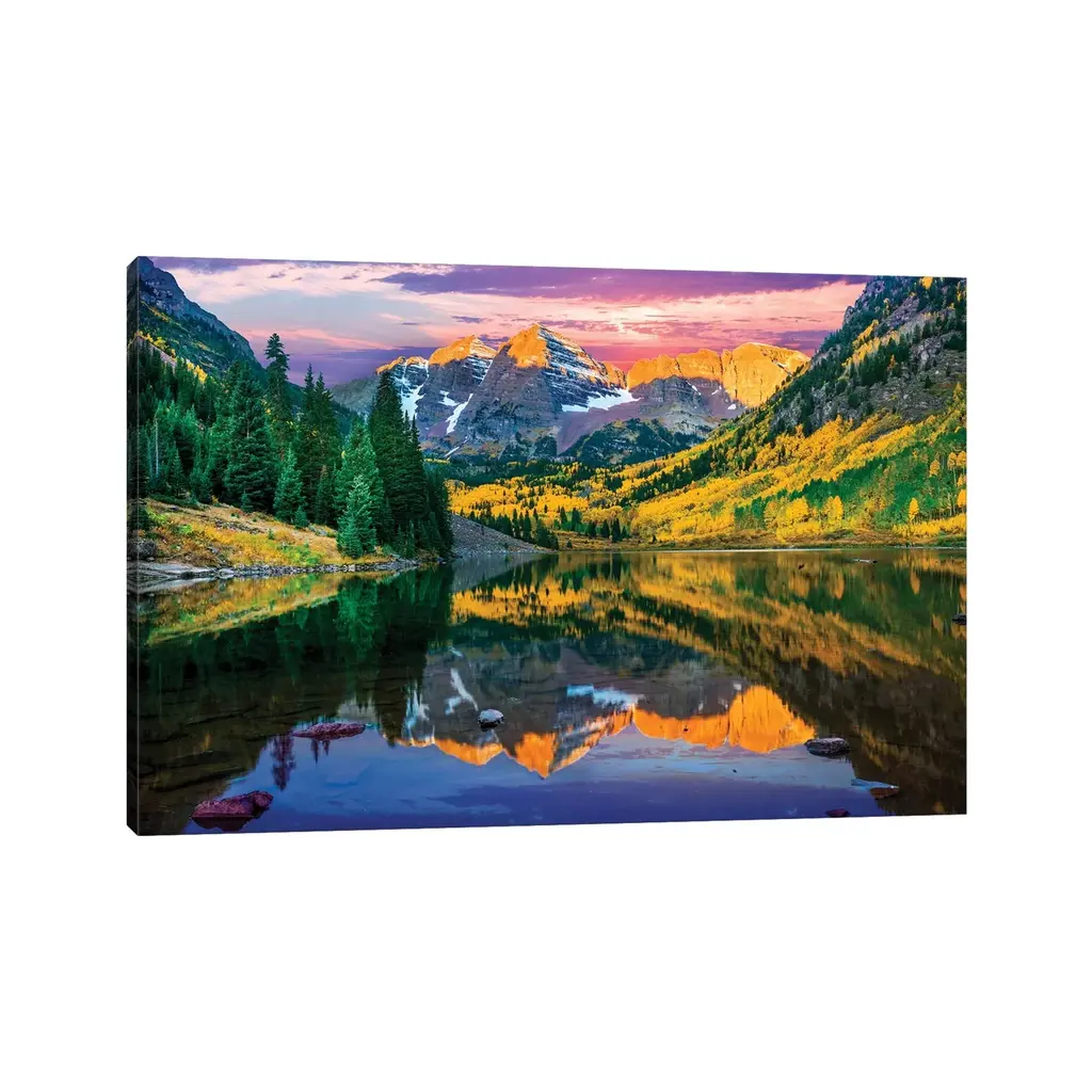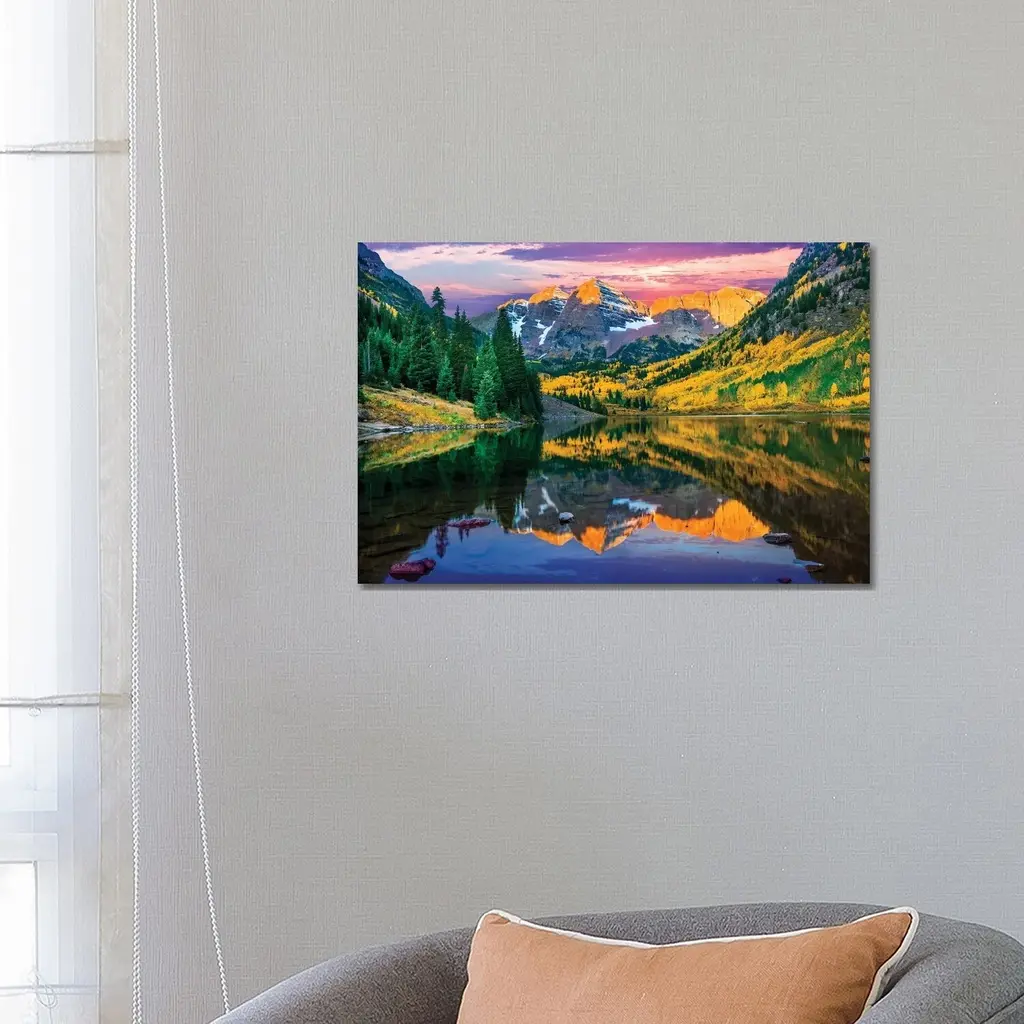 Icanvas "Rise And Shine, Maroon Bells , Aspen Colorado" By Susanne Kremer Canvas Print - 26x40x1.5