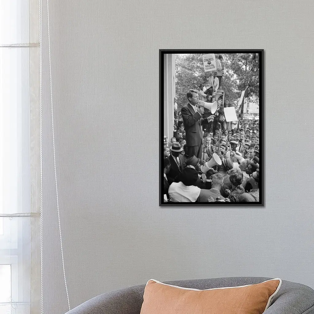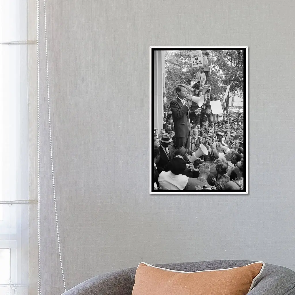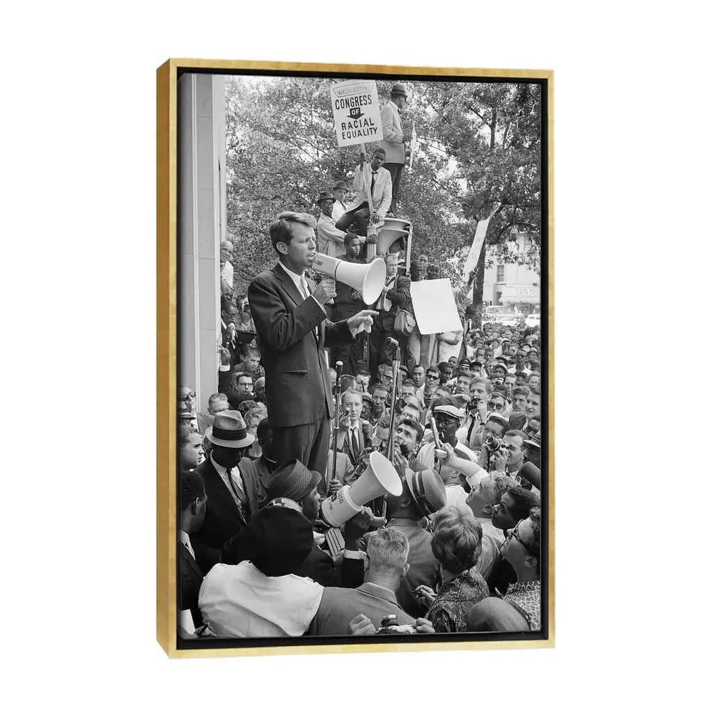 Icanvas "Robert F Kennedy" By Warren K. Leffler Framed Canvas Print - White - 48x32