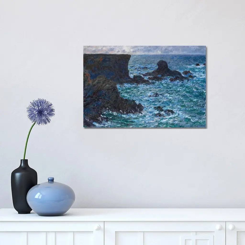 Icanvas "Rocks At Port Coton, The Lion Rock, 1886 " By Claude Monet Canvas Print - 12x18x1.5