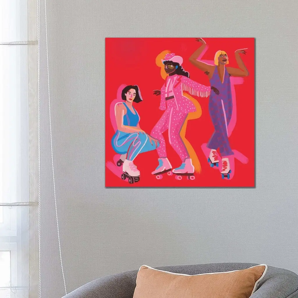 Icanvas "Roller Skaters Ii" By Niege Borges Canvas Print - 12x12x0.75