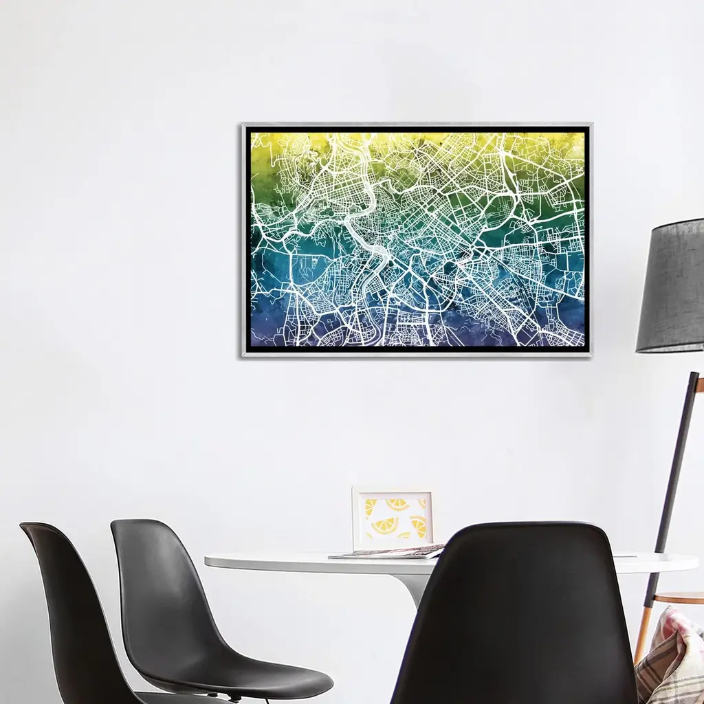 Great Art Deserves to be on Canvas! Unlike thin posters and paper prints, Giclee canvas artwork offers the texture, look and feel of fine-art paintings. This artwork is crafted in the USA with artist-grade canvas, professionally hand-stretched and stapled over North American pine-wood bars in Gallery Wrap style; a method utilized by artists to present artwork in galleries. Your Gallery-Wrapped Canvas comes mounted to a 2 inch thick, elegant hard wood frame. The art is inset, leaving a 3/8" space between the art and frame; creating a "floating" illusion. Fade-resistant archival inks guarantee perfect color reproduction that remains vibrant for decades even when exposed to strong light. Add brilliance in color and exceptional detail to your space with this contemporary and uncompromising style!