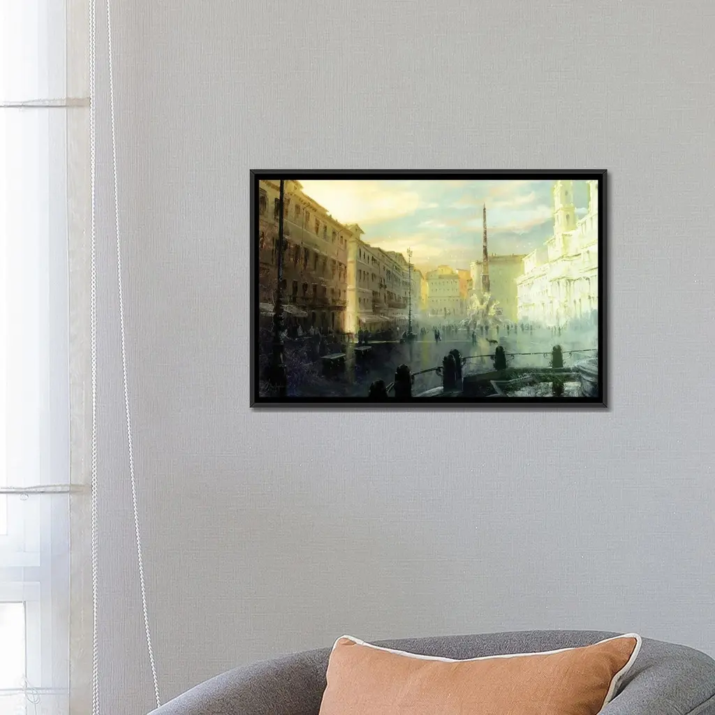 Icanvas "Rome - Piazza Navona At Dawn Full Size" By Christopher Clark Framed - Gold - 18x26