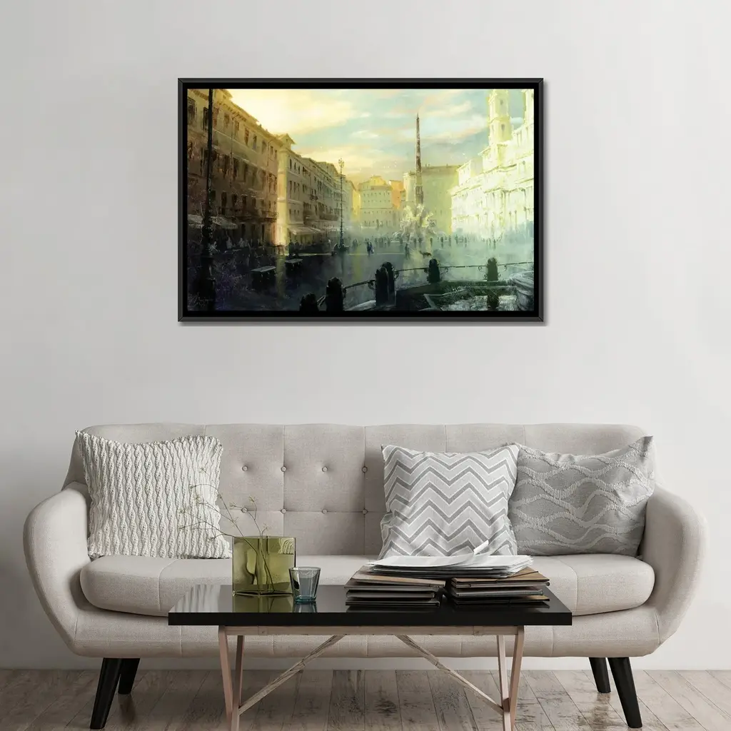 Great Art Deserves to be on Canvas! Unlike thin posters and paper prints, Giclee canvas artwork offers the texture, look and feel of fine-art paintings. This artwork is crafted in the USA with artist-grade canvas, professionally hand-stretched and stapled over North American pine-wood bars in Gallery Wrap style; a method utilized by artists to present artwork in galleries. Your Gallery-Wrapped Canvas comes mounted to a 2 inch thick, elegant hard wood frame. The art is inset, leaving a 3/8" space between the art and frame; creating a "floating" illusion. Fade-resistant archival inks guarantee perfect color reproduction that remains vibrant for decades even when exposed to strong light. Add brilliance in color and exceptional detail to your space with this contemporary and uncompromising style!