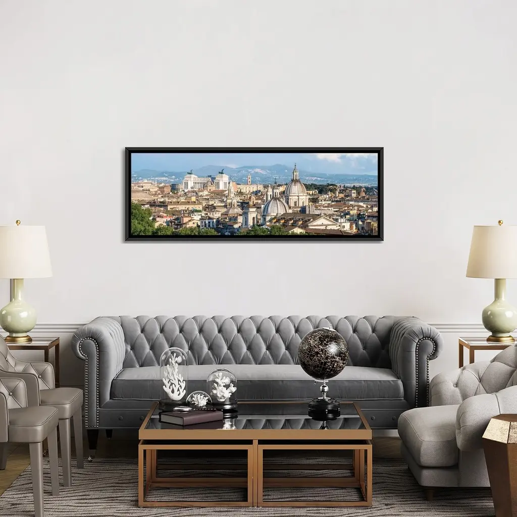 Icanvas "Rome Skyline Panorama With View Of Vatican And Victor Emmanuel Ii Monument" By Jan Becke Framed Canvas Print - 20x60 - Black