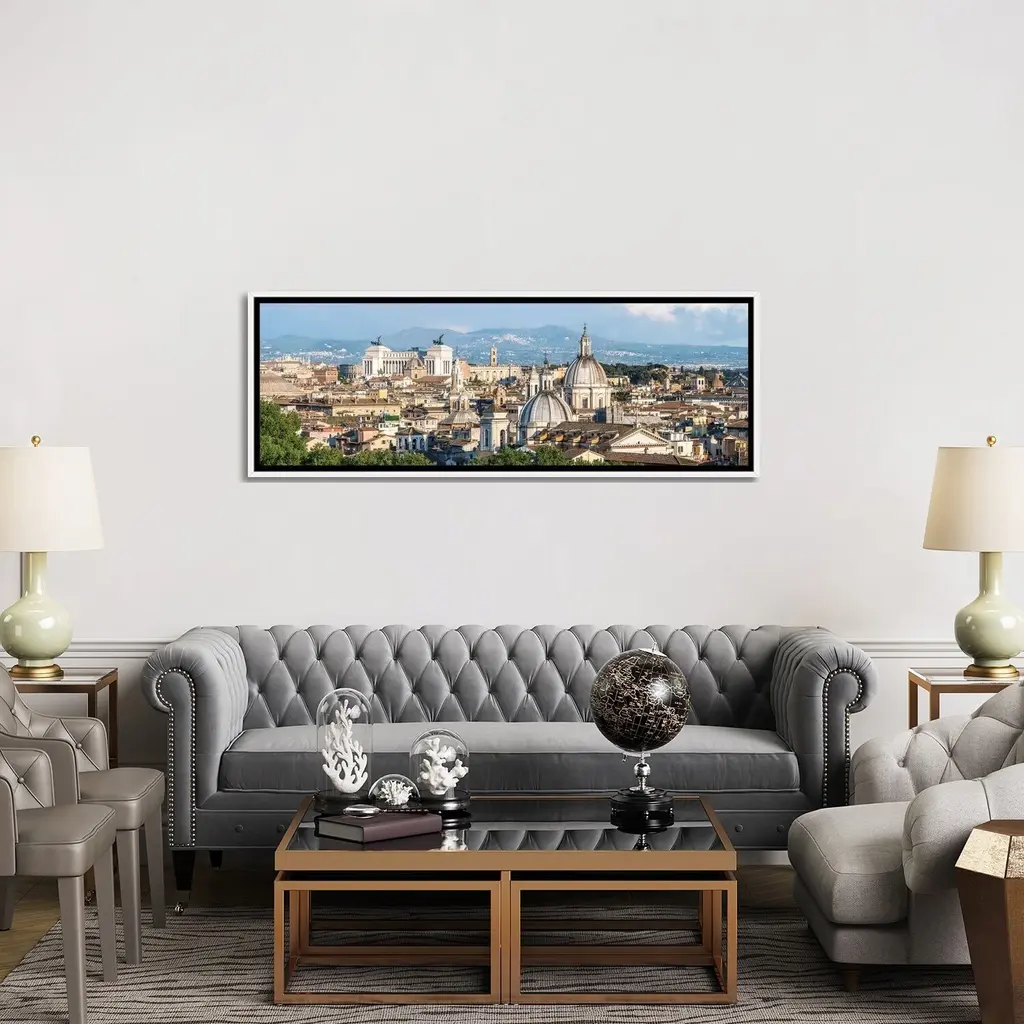 Icanvas "Rome Skyline Panorama With View Of Vatican And Victor Emmanuel Ii Monument" By Jan Becke Framed Canvas Print - 20x60 - White