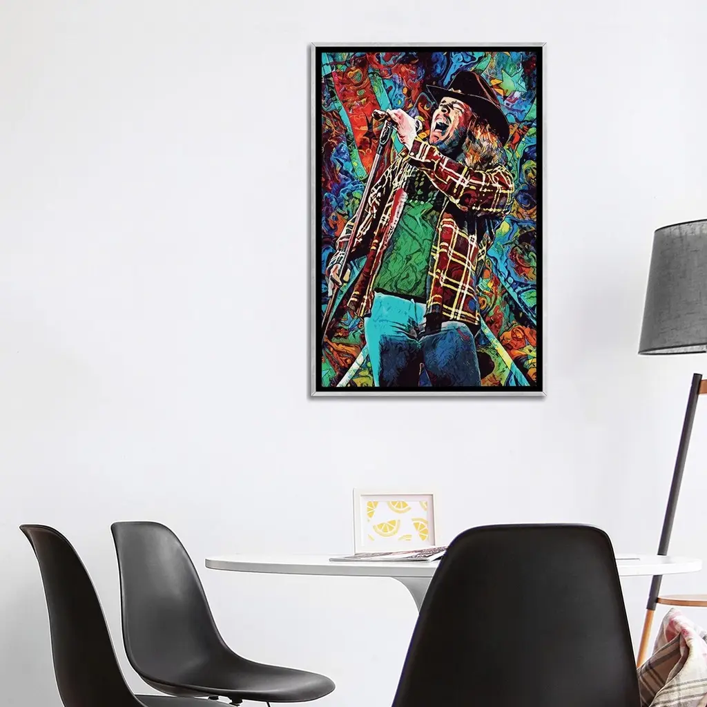 Icanvas "Ronnie Van Zant - Lynyrd Skynyrd "Free Bird"" By Rockchromatic Framed - Charcoal - 40x26