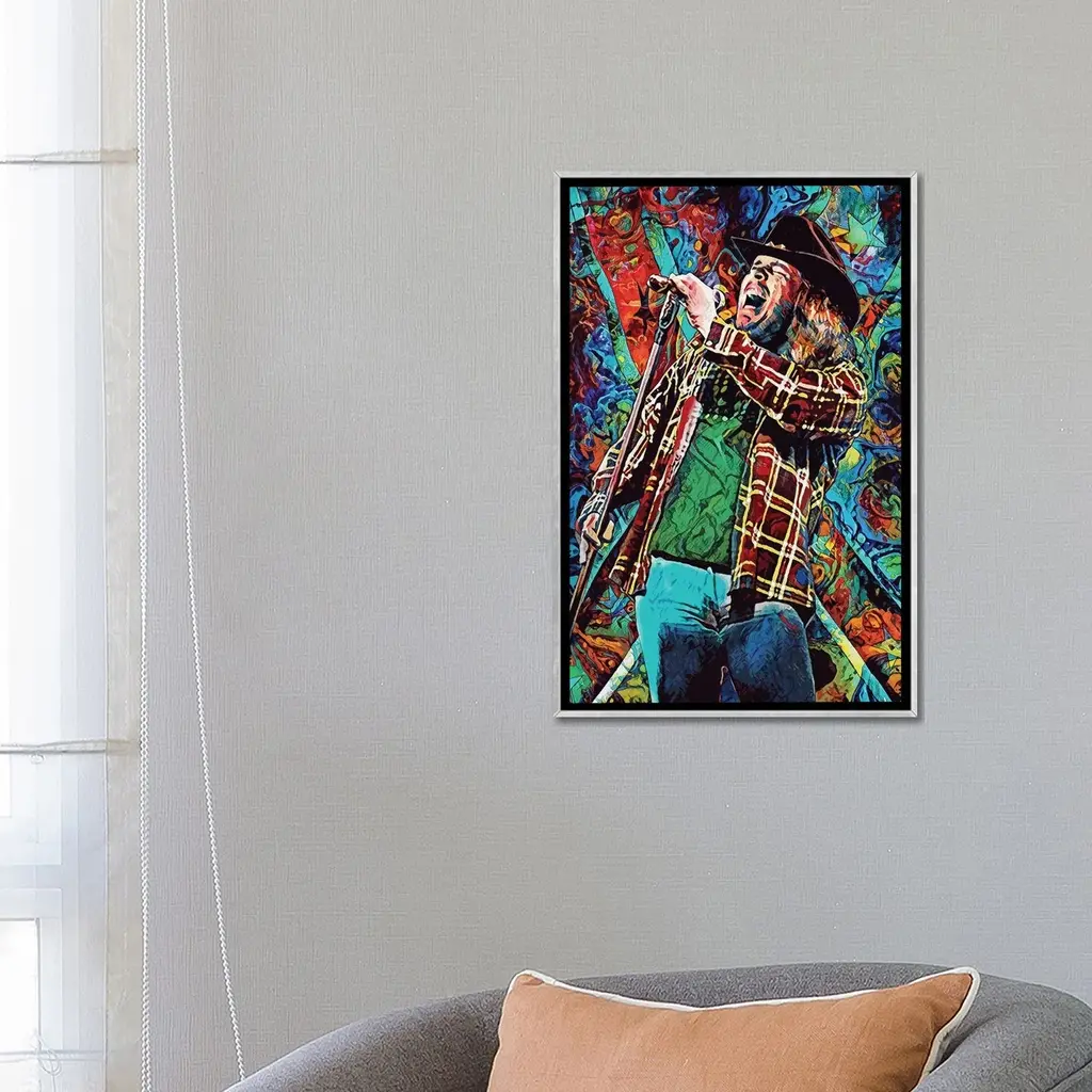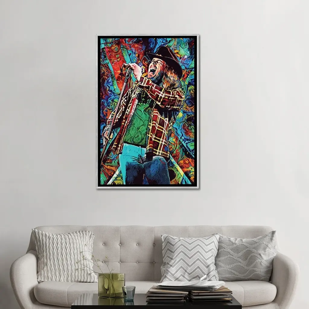 Icanvas "Ronnie Van Zant - Lynyrd Skynyrd "Free Bird"" By Rockchromatic Framed - Ebony - 26x18