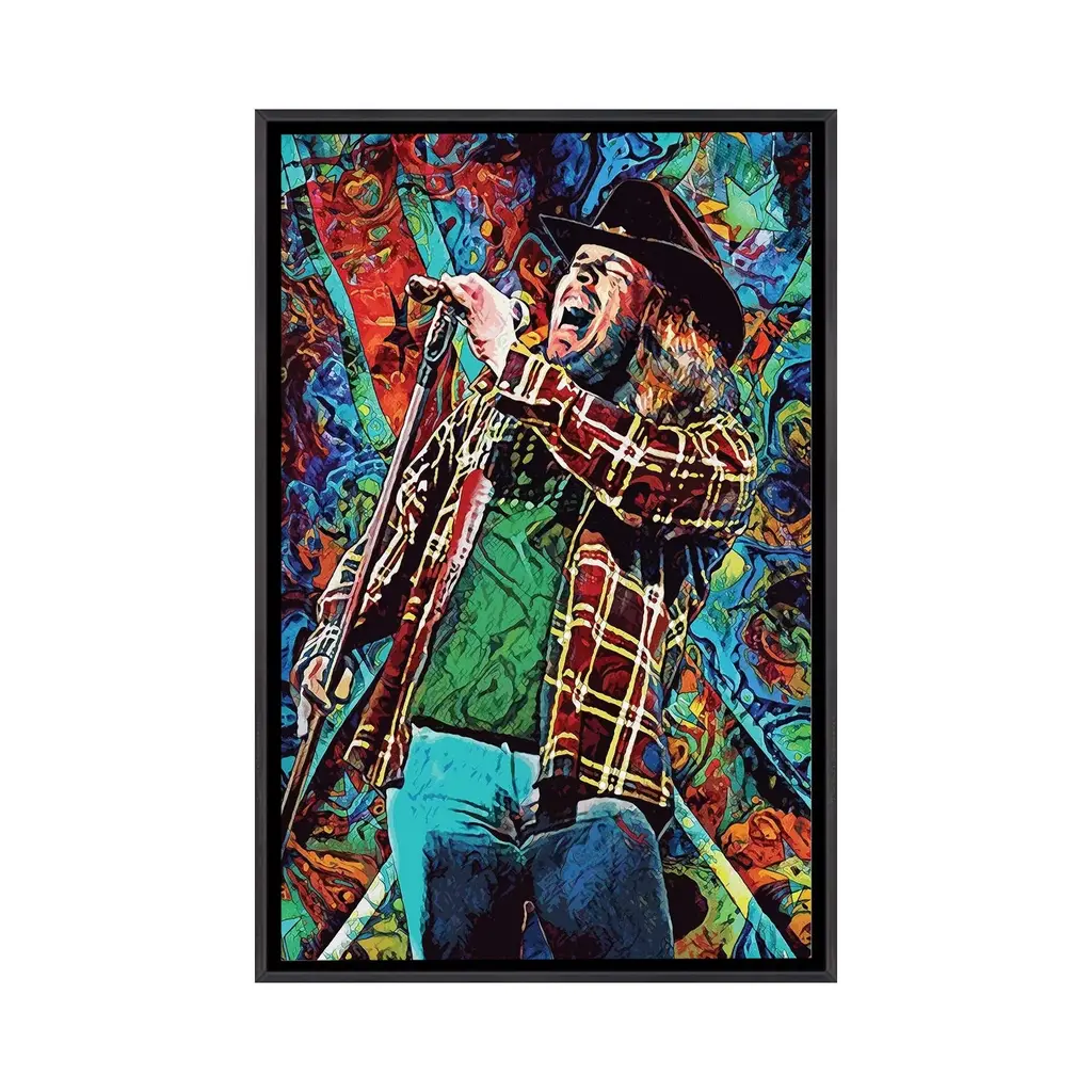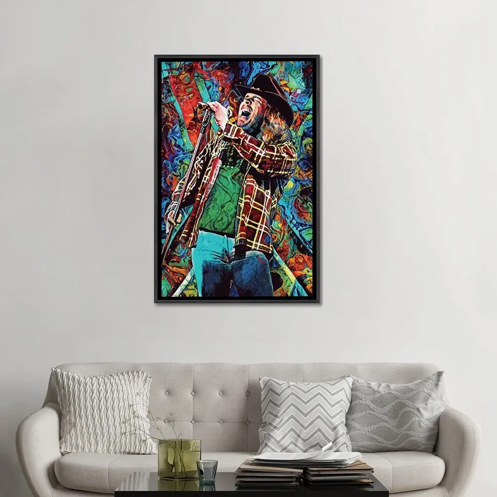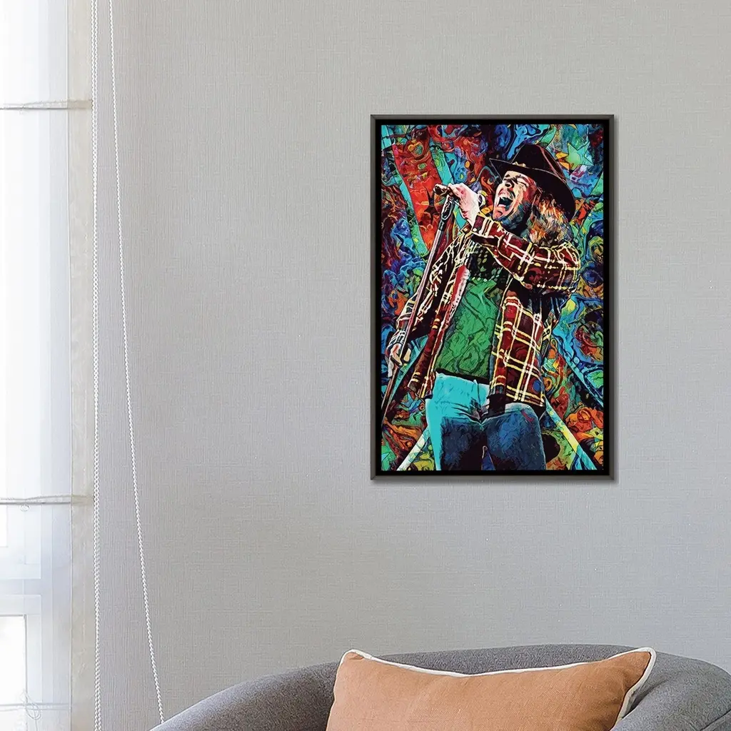 Icanvas "Ronnie Van Zant - Lynyrd Skynyrd "Free Bird"" By Rockchromatic Framed - Ebony - 48x32