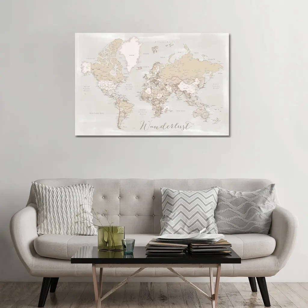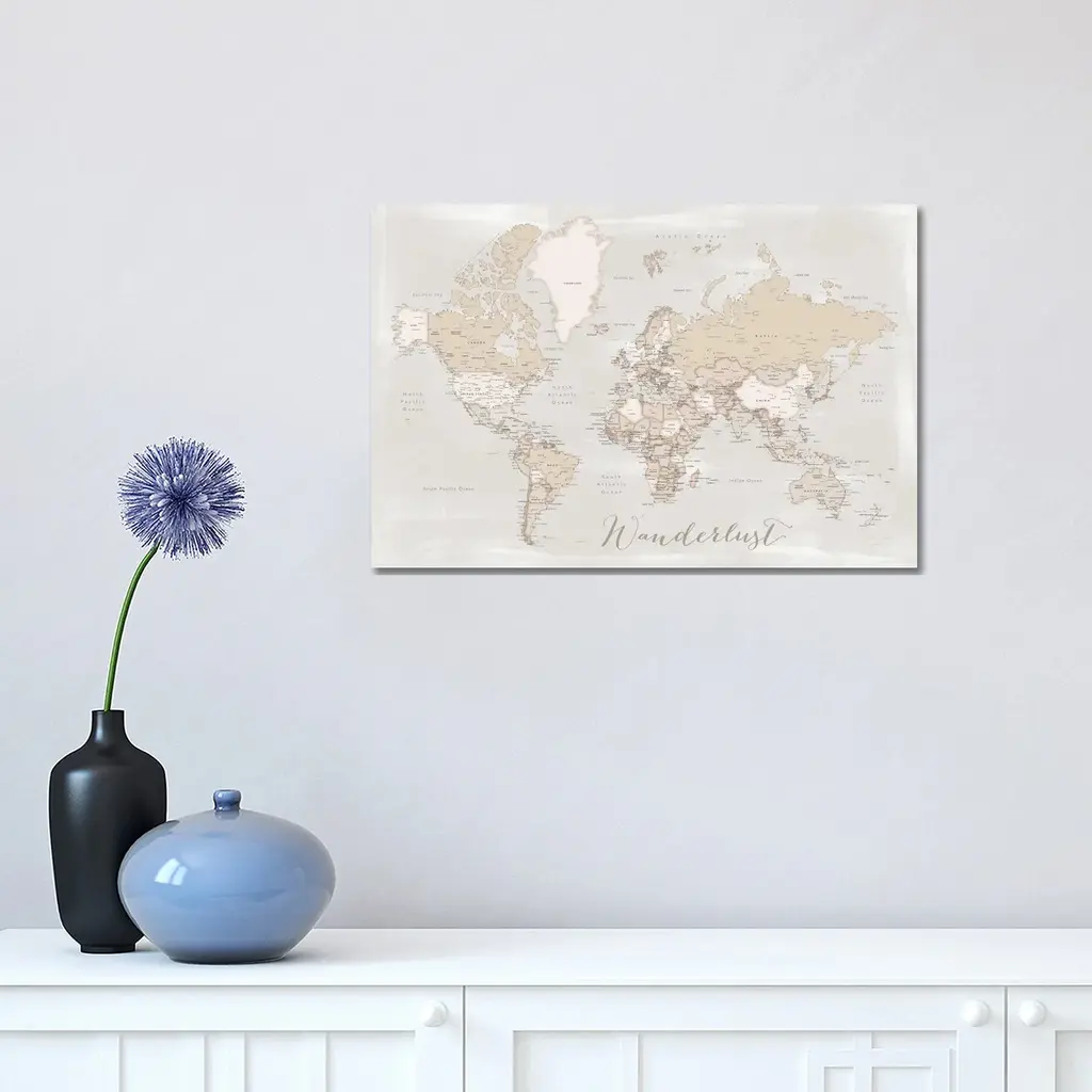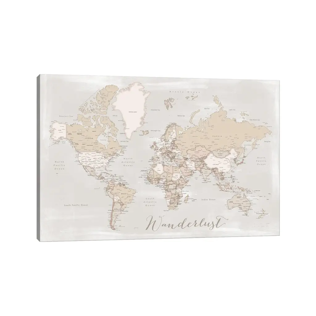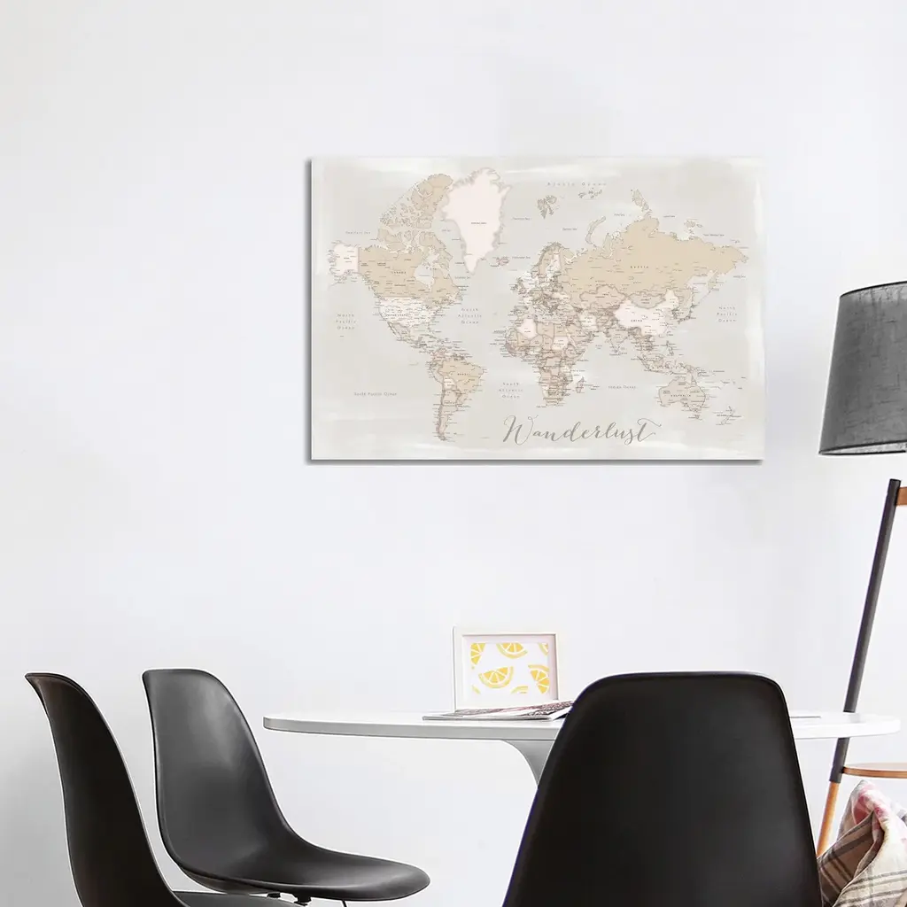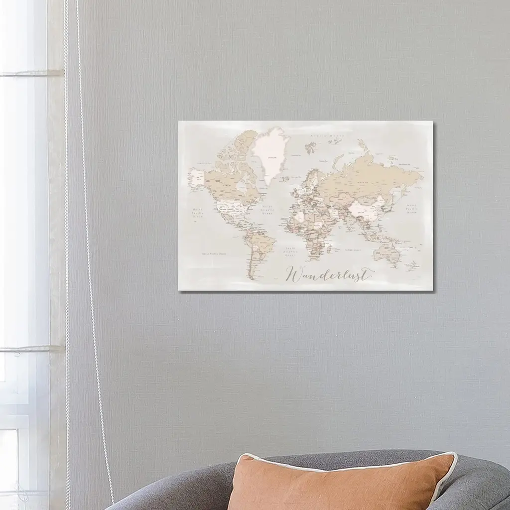 Icanvas "Rustic Detailed World Map Lucille, Wanderlust" By Blursbyai Canvas Print - 32x48x1.5