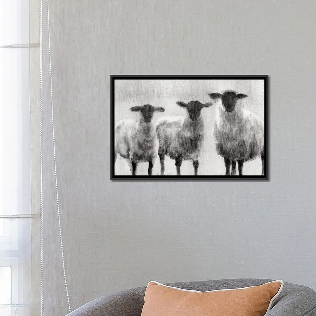 Icanvas "Rustic Sheep I" By Ethan Harper Framed Canvas Print - White - 18x26