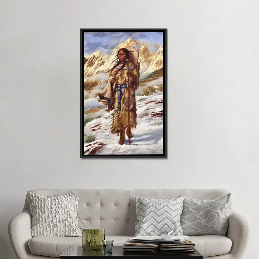 Icanvas "Sacajawea" By David Joaquin Framed Canvas Print - Gold - 26x18