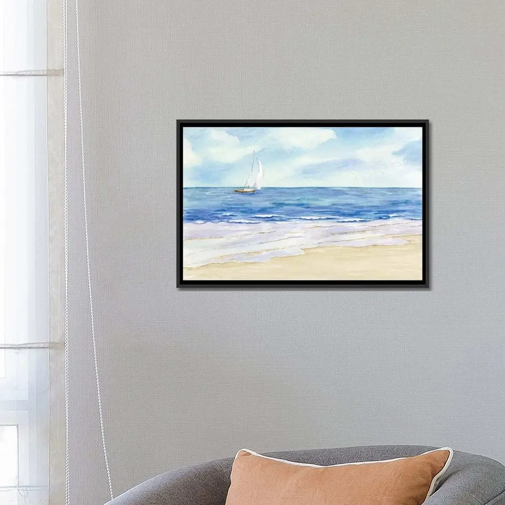 Icanvas "Sailboat & Seagulls I" By Tara Reed Framed - Gold - 18x26