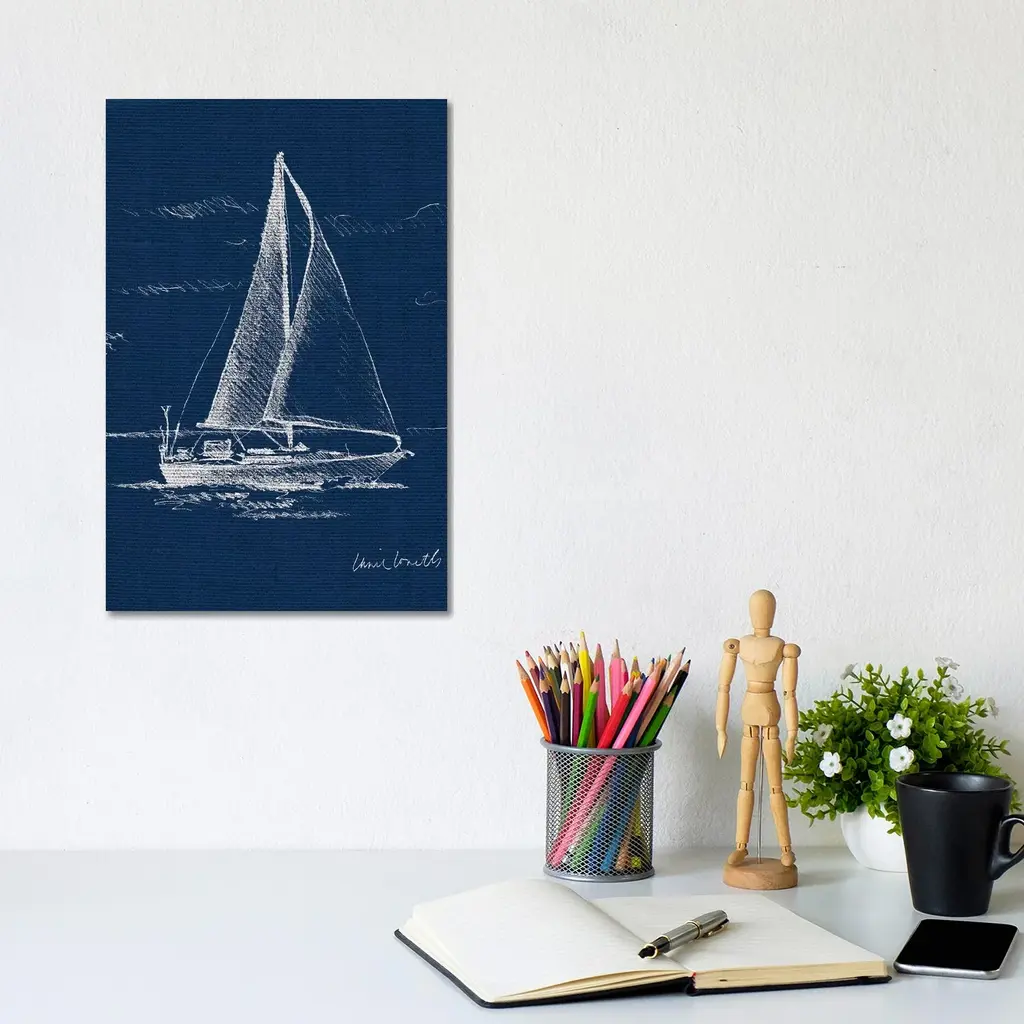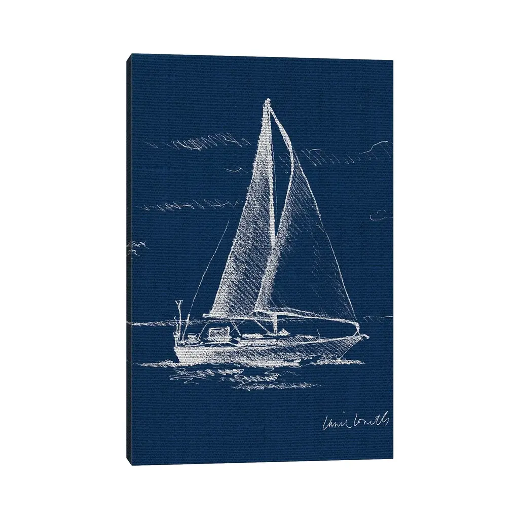 Icanvas "Sailboat On Blue Burlap I" By Lanie Loreth Canvas Print - 40x26x1.5